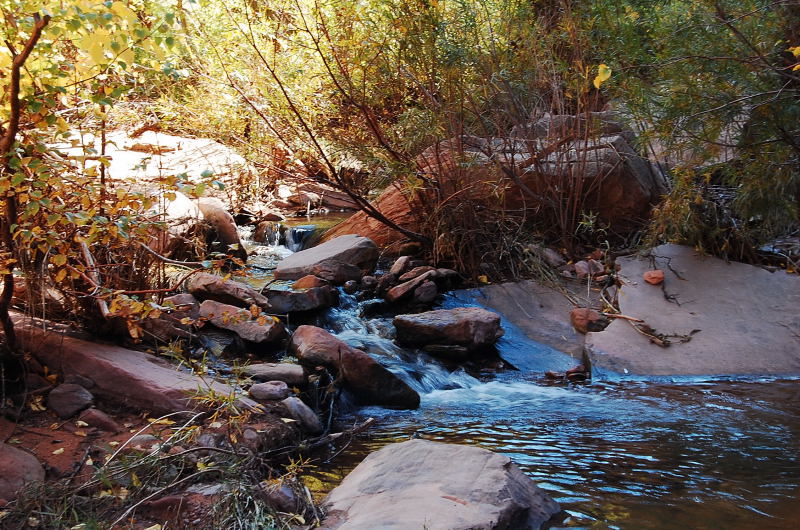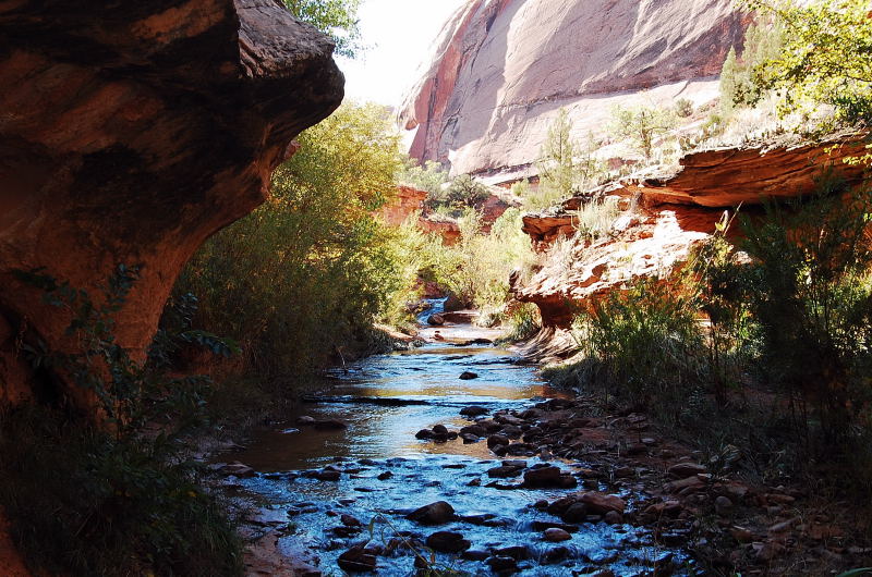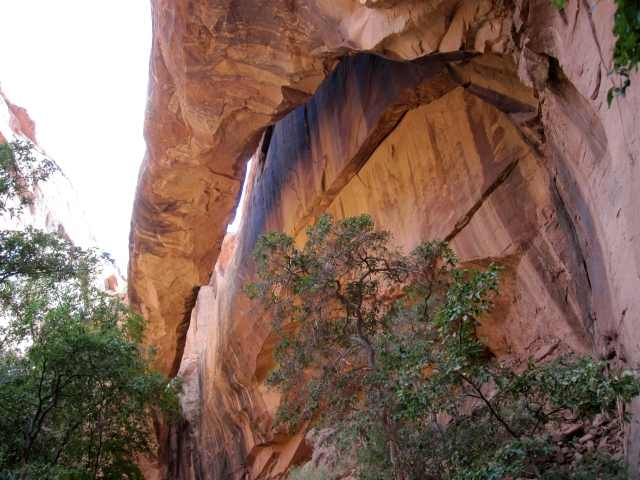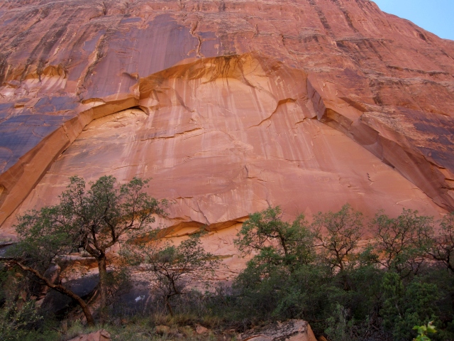 Nachdem wir einige Stunden dort verbracht haben fahren wir zum Einkaufsmarkt in der Nähe der Gouldings Lodge und besorgen Eis. Der Squawdance beginnt erst wenn es dunkel ist und findet auf einem anderen Platz, direkt vor dem Train Rock statt. Deshalb verbringen wir nach der Rückkehr noch einige Zeit in der Nähe des Schattenplatzes in einem kleinen Canyon, wohin uns ein Cousin von Justin führt.