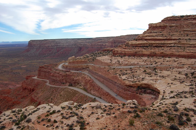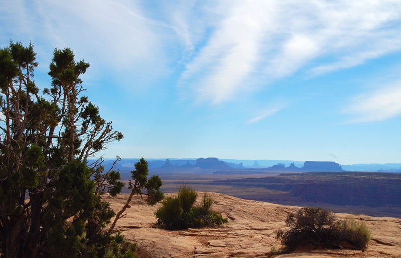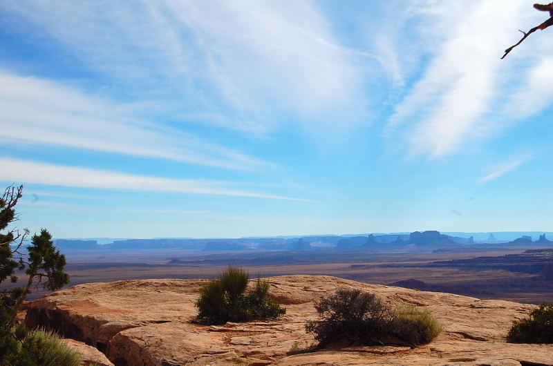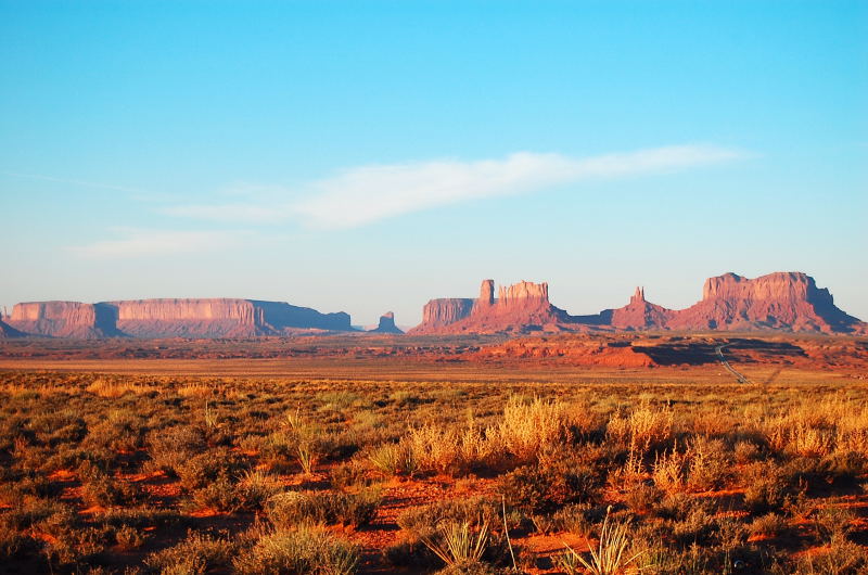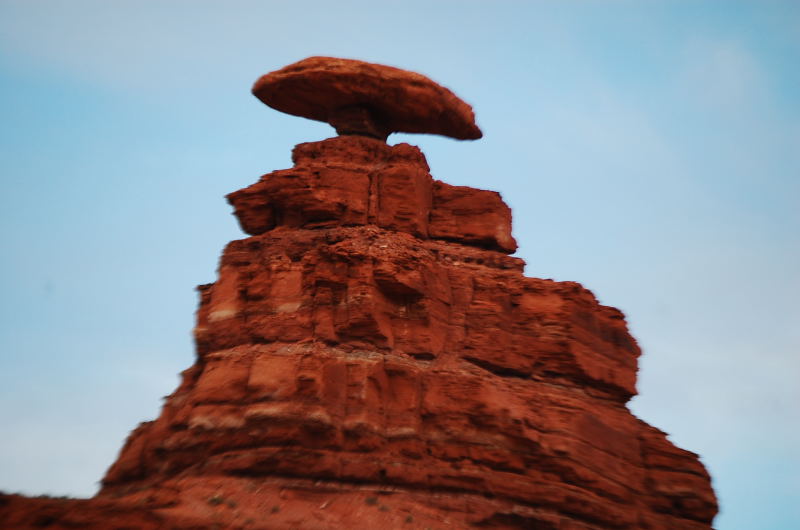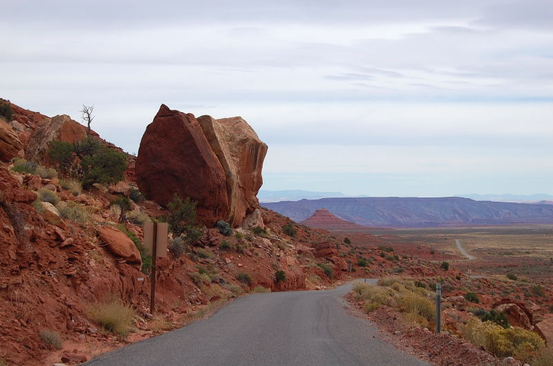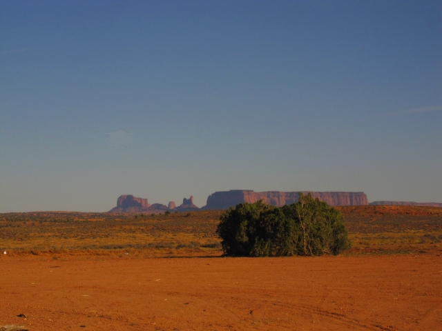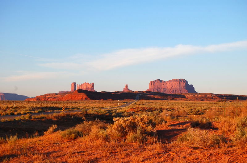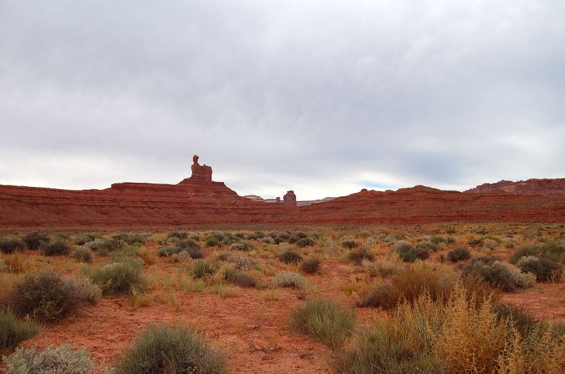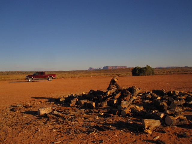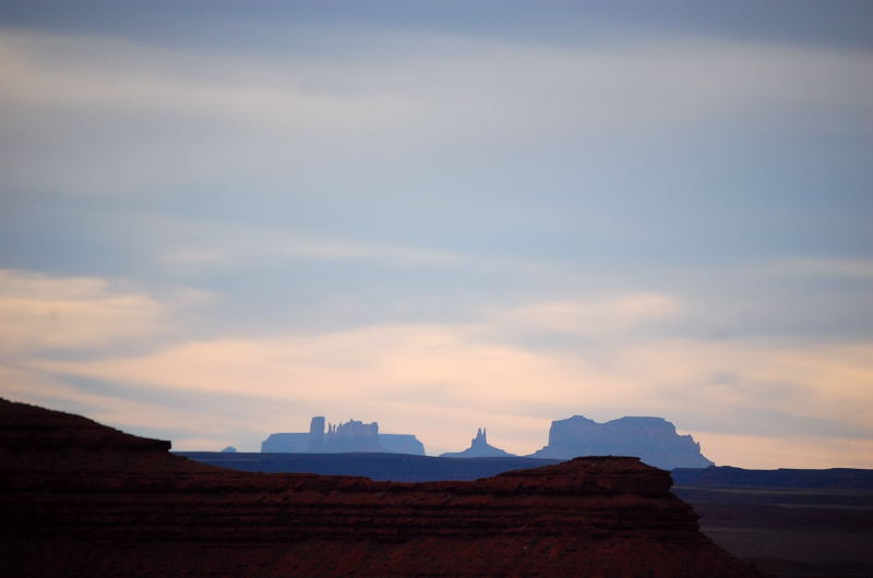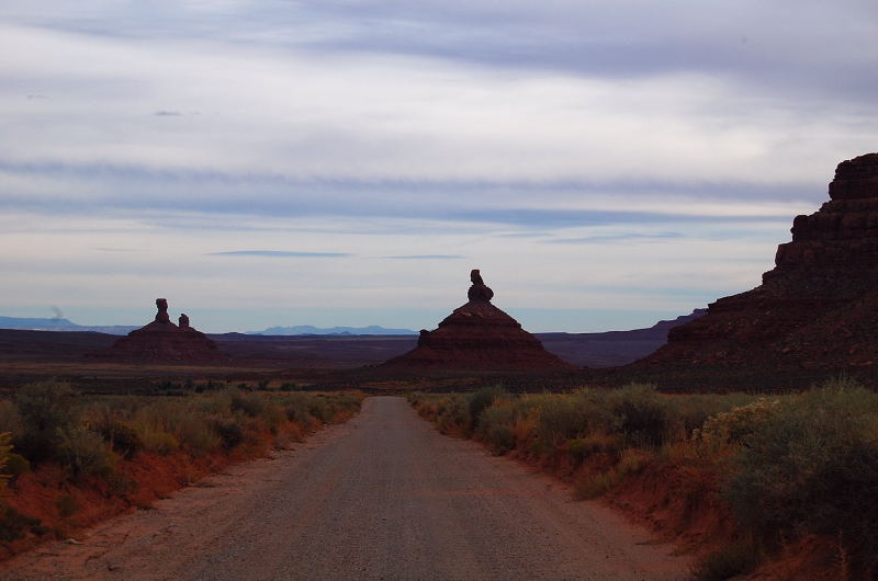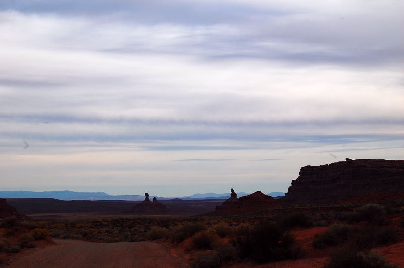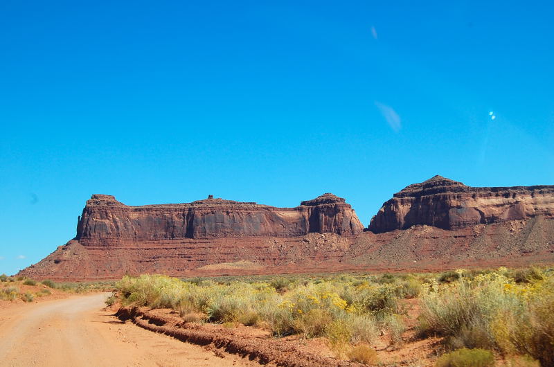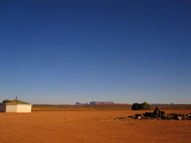 10.10.2010_Sonntag Mexican Hat Oljeto Navajo Zeremonie SquawdanceIch bin sehr bald wach und beschließe den Sonnenaufgang am Mexican Hat Felsen zu erleben und fahre in diese Richtung, Herbert habe ich selig schnorchelnd zurück gelassen. Doch dann überlege ich es mir anders, denn die schöne Anfahrt auf das Monument Valley ist von Mexican Hat aus auch nicht mehr weit und die macht sich im Sonnenaufgang doch bestimmt sehr gut.
