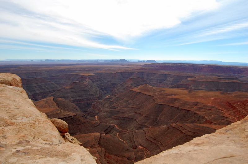 Also geht es durch Mexican Hat in Richtung Südwesten und dabei überquere ich den San Juan River, welcher dieses Jahr einiges mehr an Wasser hat. Die Anfahrt zieht sich dann doch etwas, wie meist neige ich dazu die Entfernungen hier zu unterschätzen. Es sind wohl so 5-6 Meilen bis die wohlbekannte Ansicht vor mir auftaucht und das morgendliche Leuchten hat auch schon begonnen. Ich versuche mich an verschiedenen Punkten und mache meine Fotos, wie immer ist diese Morgenstimmung wunderschön. Es ist recht frisch und es sind nur wenig Autos unterwegs. Als die Sonne dann alles voll erleuchtet hat wirken die Entfernungen wiederum ganz anders, alles erscheint viel näher als noch in der Dämmerung. Dann mache ich mich auf den Rückweg.