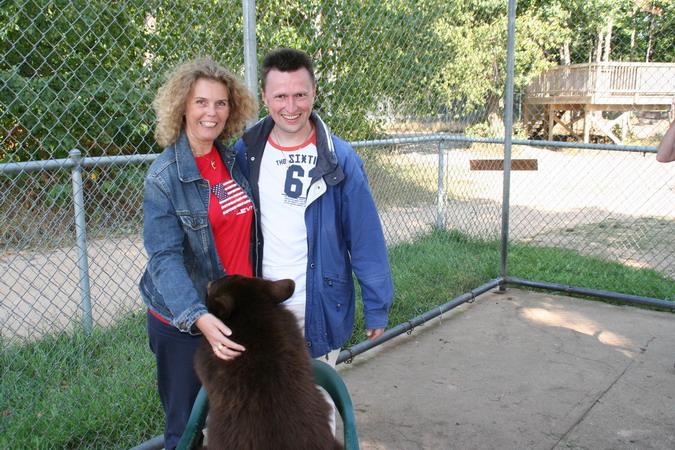 Wir bezahlten 10 $ pro Auto und gingen los, um uns die riesigen Gehege (getrennt nach männlichen und weiblichen Bären) anzuschauen. Plötzlich hörten wir von hinten ein kräftiges „Guten Morgen“. Mr. Oswald kam auf uns zu und freute sich, dass er Deutsche begrüßen konnte. Er sprach noch sehr gut Deutsch und wir unterhielten uns gemischt in Englisch und Deutsch und er erklärte uns unter anderem, das der Staat oft ihm kleine Bären brachte, wo die Mutter getötet wurde oder einem anderen Schicksal des Lebens beraubt wurde. Inzwischen, soweit ich mich noch erinnern kann, hat er an die 27 Bären groß gezogen.
