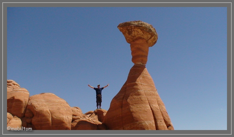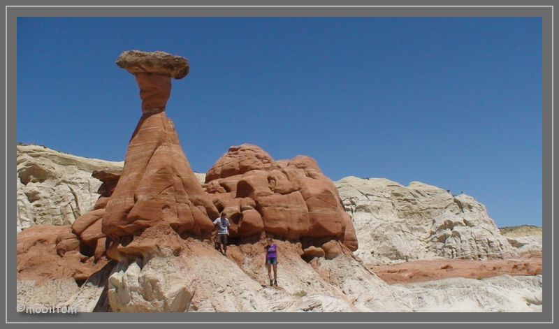 Die White Rocks ca. 20 Meilen westlich von Page waren unser Ziel, aber im Visitor Center erfuhren wir, dass die Strasse dorthin durch starken Regen in den letzten Tagen unpassierbar geworden war. Als Alternative riet man uns dazu, die kurze Wanderung zu den Toadstool Hoodoos zu unternehmen. Bei brütender Hitze gingen wir ca. einen Kilometer durch eine atemberaubende Landschaft in Rot- und Brauntönen. Bei den Hoodoos angekommen waren wir die einzigen Besucher, haben die einzigartige Atmosphäre genossen und sind auf den Steinen rumgeklettert.