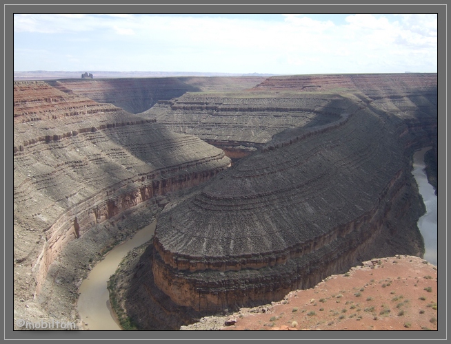 Goosenecks Overlook kurz hinter Mexican Hat ist folgendes zu sagen. Entweder sind wir mittlerweile verwöhnt, von den unglaublichen Ausblicken der letzten Wochen, oder der Abstecher lohnt schlicht und ergreifend nicht. Was uns vor 3 Wochen eventuell noch in Ekstase versetzt hätte, rang uns dort nur noch ein müdes, anerkennendes Kopfnicken ab.