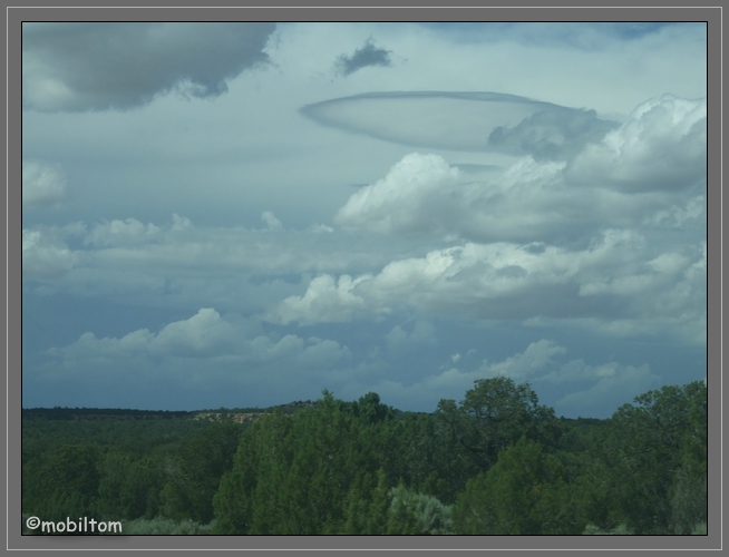 Auf der Weiterfahrt zog sich der Himmel erstmalig bedrohlich zu, man konnte die Blitze und den Regen in der Ferne beobachten und unser Weg führte genau dorthin. Unser Wagen hatte nach der Staubschlacht im Monument Valley dringend eine Wäsche nötig, also wären wir über einen heftigen Gewitterguss gar nicht böse gewesen, doch fiel unser Ausflug zum