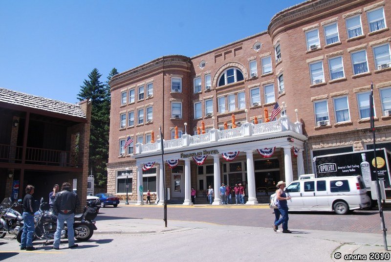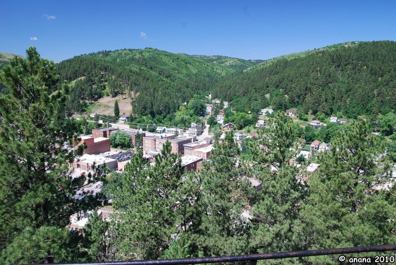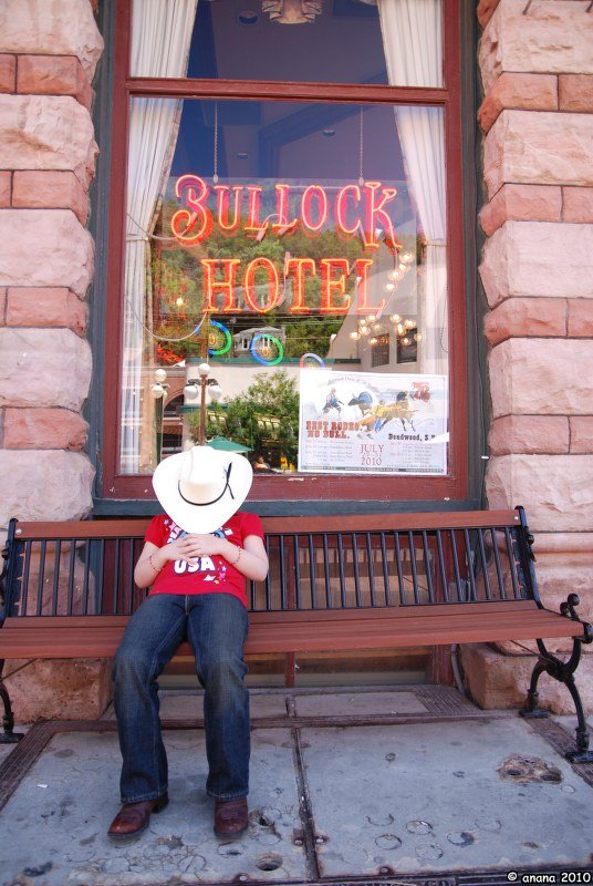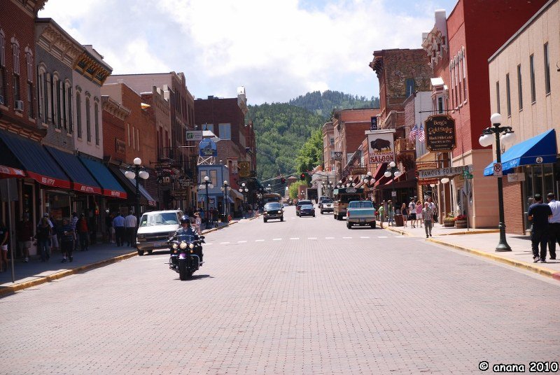 Im Örtchen selber ist es richtig nett. Man merkt, dass die berühmte Sturgis Ralley nicht mehr weit ist, denn in den ganzen Black Hills wimmelt es von Motorradfahrern (die müssen die vielen Kurven lieben) und man bekommt hier überall die wildesten Andenken T-Shirts. Natürlich kaufen auch wir uns welche, zwar ohne Moped, aber egal!