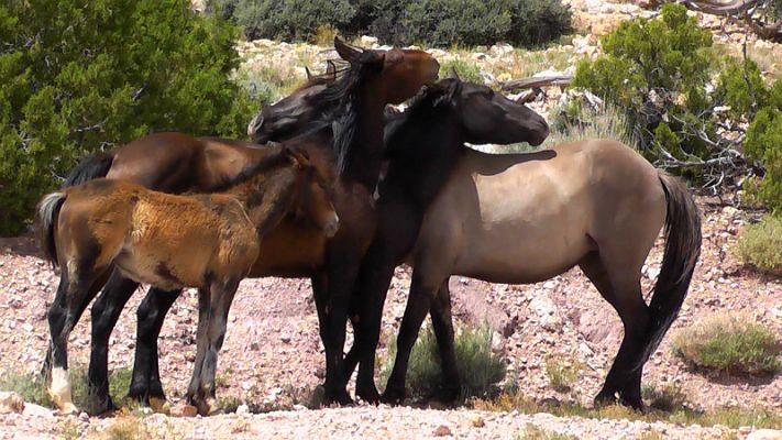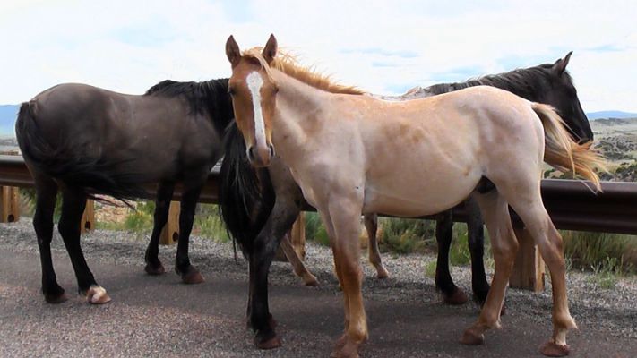 Hier warten die "Bucking Horses" auf ihren Einsatz (wie wir mal in einer Dokumentation gesehen haben, werden diese Pferde, oft Mustangs oder sonstige "unreitbare" auf großen Weiden gehalten und nur ab und an zu einem Rodeo gekarrt. Dort buckeln sie dann, weil sie einfach keine Reiter wollen und weil sie durch einen Gurt am Hinterleib gereizt werden. Dieser Gurt quetscht nicht die Hoden der Pferde (die sind weiter hinten und Stuten haben ja auch keine, ich denke auch die wenigsten männlichen Pferde dürften hier noch Hengste sein), aber es nervt das Pferd halt und es buckelt. Dann gilt der alte Satz: "8 seconds to Glory" also entweder bleibt der Reiter 8 Sekunden oder länger oben und wird mit einer Punktewertung für seinen Stil belohnt und kann Preise gewinnen oder - meistens - fällt er vorher runter.
