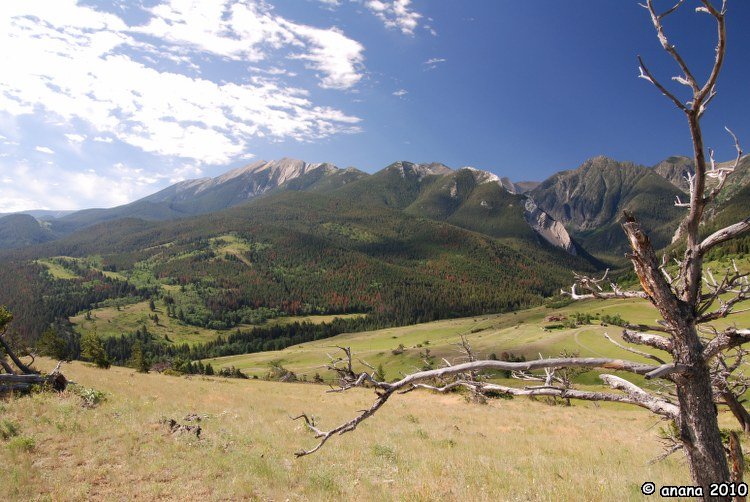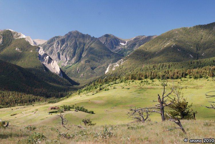 Der letzte Ausritt an diesem Samstag führt uns am Nachmittag noch einmal ins Tal zur eigentlichen Hauptranch unserer Gastgeber. Auf der Gästeranch ist wetterbedingt nur zwischen Juni und Ende September Saison, den Rest des Jahres leben die beiden hier unten, kümmern sich von hier aus um Rinder und Pferde und die Buchungen für den Sommer.