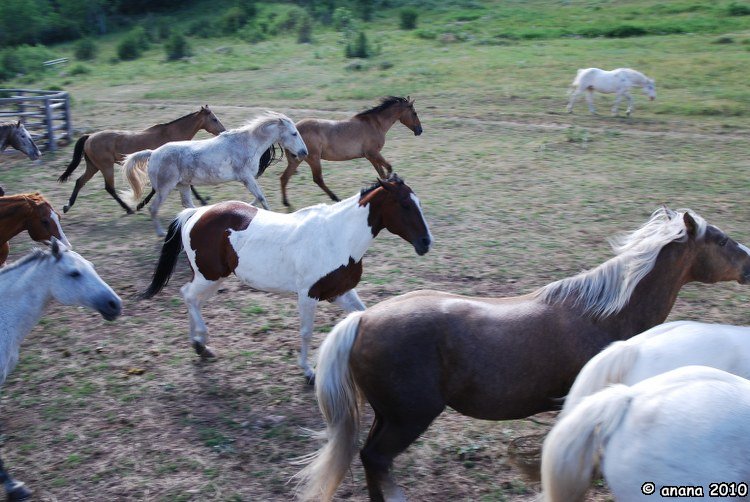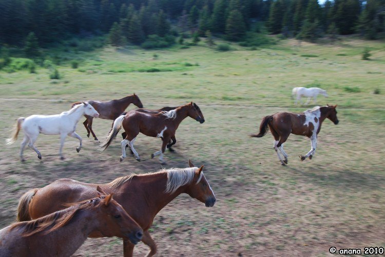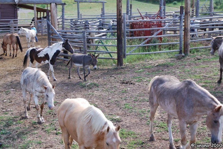 Hier sieht man mittlerweile alle Pferde wieder draussen, wie sie den "Vorgarten" des Ranchhauses kurz halten.