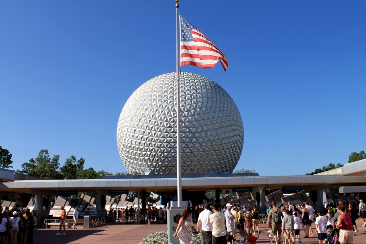 Unser Frühstück nahmen wir wieder im Hotel ein, und wieder wurden wir von Nelly erwartet. Wir mussten Ihr von unserem gestrigen Tag erzählen und was wir heute vorhatten. So dauerte unser Frühstück auch heute wieder etwas länger. Heute hatten  wir uns EPCOT oder „Experimental Prototype Community Of Tomorrow“  vor genommen. Da wir einen Parkplatz fast vorm Eingang fanden, brauchten wir auch nicht lange wandern. Karten hatten wir ja gestern mit besorgt, so dass heute uns nur die Taschenkontrolle am Eingang aufhielt. Unser erstes Ziel ist hier immer der riesige Golfball der gleich hinterm Eingang steht. Richtig heiß es ja Spaceship Earth und innendrin macht man eine Fahrt durch die Geschichte der Kommunikation. Hier brauchten wir noch nicht anstehen, auch blieben wir nicht wie beim letzten Mal, mitten in der Kugel hängen.