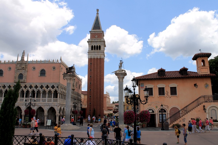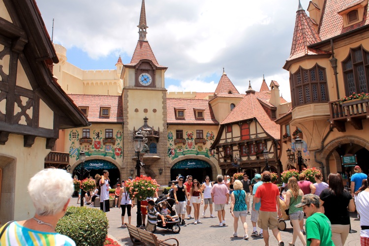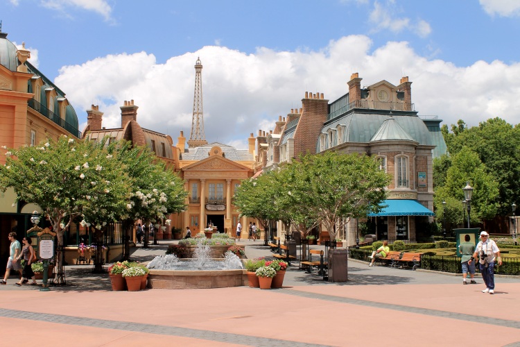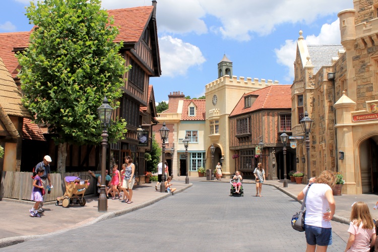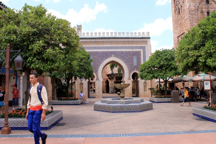 Danach standen the Seas und the Land auf dem Programm. Im Pavillon von the Land befindet sich Soarin, und hier wurden wir mal wieder überlistet. Die Schlange zum anstellen sah ja so kurz aus, das wir uns auch anstellten. Aber sie führte doch noch um viele Ecken, so dass es doch etwas länger dauerte, bis wir in den Fluggleiter Platz nehmen durften. Die Fahrt über Kalifornien war atemberauben schön. Anschließend machten wir uns auf zur Weltreise und besuchten World Showcase. Hier stellen sich 11 Länder in Pavillons zur Schau. So besuchten wir in der Reihenfolge Kanada, Großbritannien, Frankreich, Marokko, Japan, USA, Italien, Deutschland, China, Norwegen und Mexiko.
