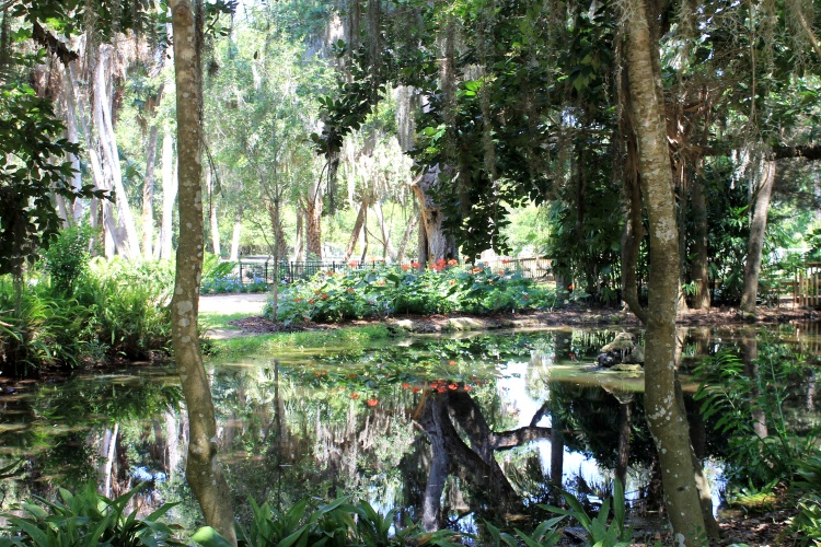 Der 250.000 qm Garten (das ganze Anwesen ist 9x so groß) wurde 1680 angelegt und beheimatet um die 1.500 Pflanzenarten, die fast über das ganze Jahr hinweg eine Blütenlandschaft garantieren. Das erste 1680 erbaute Haus brannte ab, und das zweite wurde am Ende des Bürgerkrieges von den Truppen des General Shermans niedergebrannt. Der Garten blieb fast weitgehen unversehrt, und ist auch hier die Hauptaktaktion. Wir kauften uns Eintrittskarten für die Gartenanlage und für den Audubon Swamp Garden.