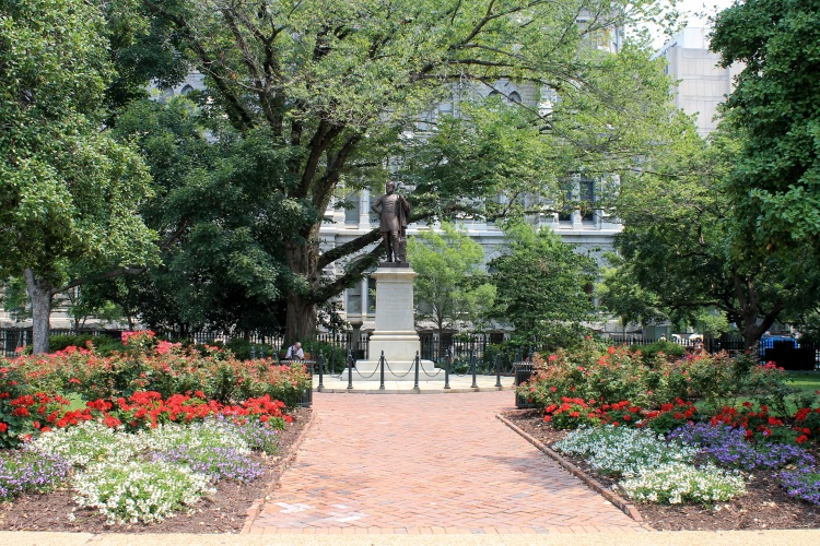 Nun ging es die National Statuary Hall, in dieser sind Statuen von bekannten Amerikanern ausgestellt. Diese Halle hat auch eine großen Kuppel, und war von 1807 bis 1857 der Versammlungssaal des Repräsentantenhauses der Vereinigten Staaten. Jeder Bundesstaat darf 2 Statuen für das Capitol stiften, davon stehen hier 38 Statuen.