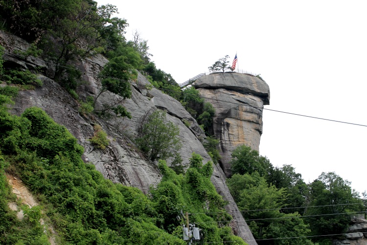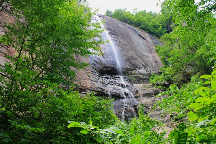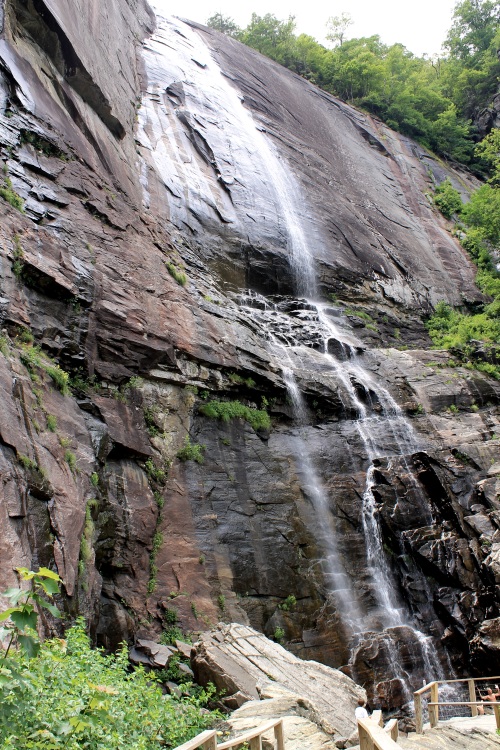 Dry Falls, einem beliebten Wasserfalls der sich ein paar Meilen außerhalb von Highlands in North Carolina befindet. Diese 75-Feet hohen Wasserfall in der Nantahala National Forest fließt über einem überhängenden Felsen, der es uns ermöglichst hinter den Wasserfällen zu wandern und dabei trocken zu bleiben (daher der Name). Direkt am Fall befindet sich ein Parkplatz, und von diesen wandern wir zum Fall hinunter, und auch hinter dem Wasserfall. Aber ganz trocken bleib man aber nicht, ein paar Tropfen bekommt man doch ab.