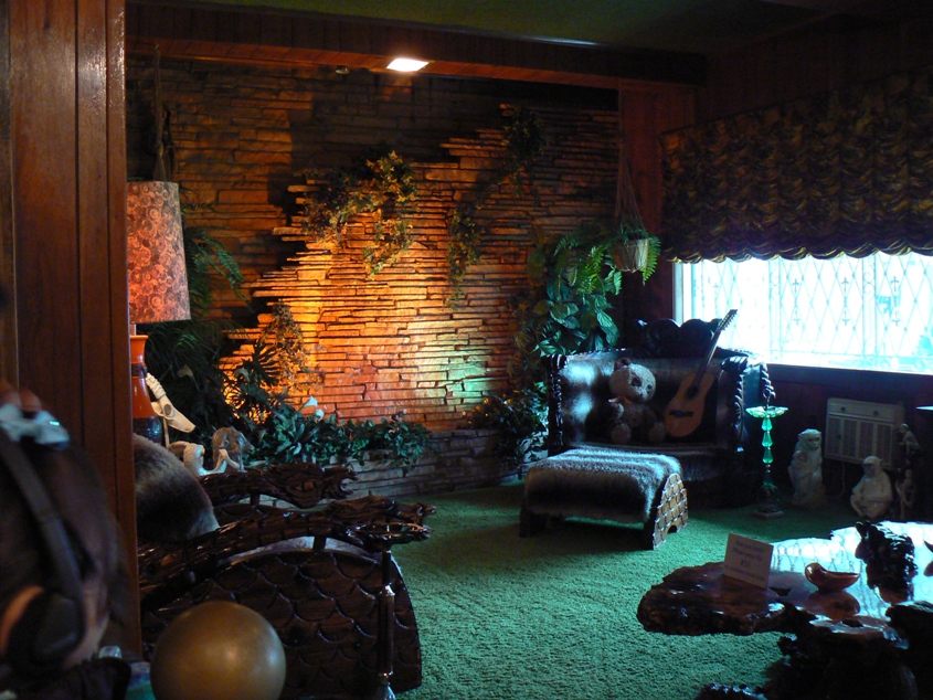 Da wir uns hier in einer Touristenabzocke nach großem Stil befinden, wollen wir nicht beeindruckt sein… aber Elvis zieht auch uns in seinen Bann! Zuerst dürfen wir durch Graceland „itself“ rennen. Das Haus ist zwar erstaunlich klein, aber dafür ein 1A- Relikt aus den 70igern, als hätte man 1977 auf die timeout Taste gedrückt! Elvis hatte natürlich den neuesten Schnickschnack und war super modern eingerichtet, aber das bedeutet natürlich riesige Fernseher, zig Plattenspieler und FARBEN ohne Ende. Richtig geil!