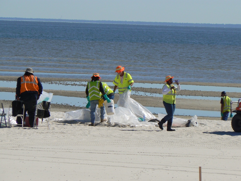 Um 8:30 Uhr können wir dann die Frage mit dem weißen Strand und dem türkisfarbenen Wasser klären: Stimmt! Allerdings wurde der Reiseführer vor dem Untergang der Deepwater Horizon geschrieben… auf dem weißen Strand und im türkisfarbenen Wasser schwimmen nämlich schwarze Ölklümpchen…