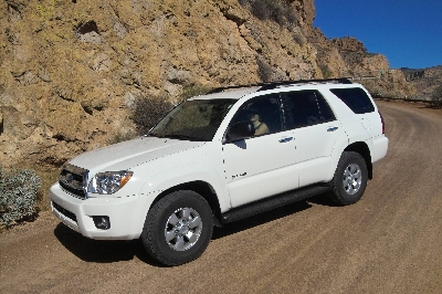 Per Internet habe ich mit dem UA Code einen SUV für zwei Wochen für 526 Dollar vorgebucht. Mit klopfendem Herzen stehen wir am Schalter und hoffen das es keine Probleme gibt. Gibt’s nicht! Da ich über den „Save Time now“ Button schon alle Informationen vorab versandt habe sind wir 10 Minuten später in der Tiefgarage und können aus der Choiceline wählen. Dort stehen viele Jeep Liberty (zu kleiner Kofferraum), drei Toyota RAVs und eine Toyota 4Runner für den wir uns entscheiden. 4WD hat er, geräumig ist er auch und high clearance hat er sowieso – perfekt.