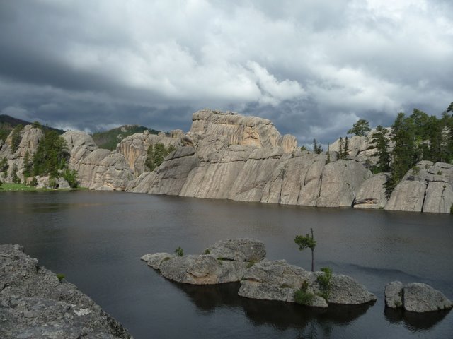 Weiter gings zum Sylvan Lake. Hier gab es erstmal Frühstück. Anschließend umrundeten wir den See obwohl es sich wieder zuzog. Es blieb aber trocken. Natürlich suchten wir nach dem Goldschatz der Tempelritter. Da ich euch hier noch schreibe: wir hab ihn auch nicht gefunden. Typisch Hollywood. Zudem waren wir doch über die Lage des Sees erstaunt. Im Film liegt er anscheinend direkt hinter Mount Rushmore.