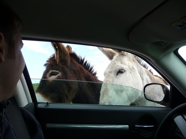 Die Büffel sind in unserem Urlaub zu meinen Lieblingstieren avanciert. Scheinbar sanfte Riesen, aber nicht zu nahe kommen! Die sind nicht ohne, wie ein Fahrer eines Autos vor uns erleben durfte... Und die Esel gucken ja verdammt süß! Die wissen schon, wie man an Leckereien kommt...  :wink:
