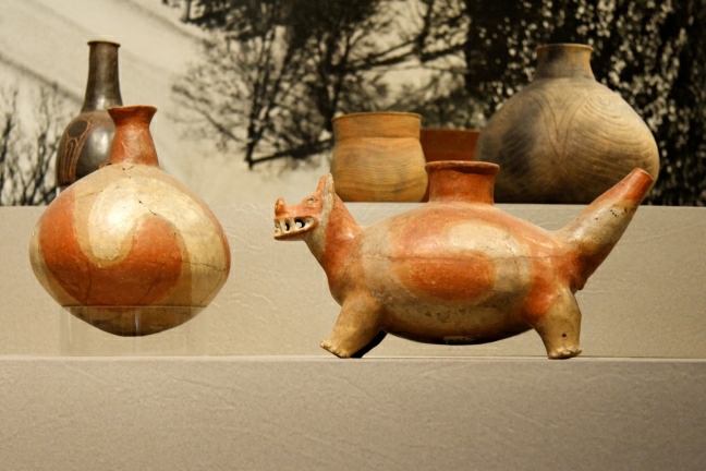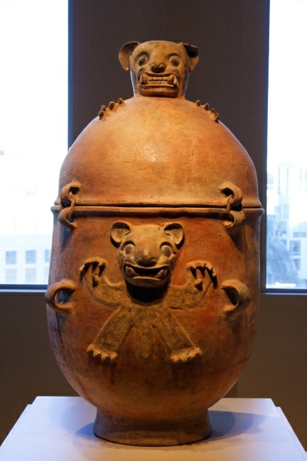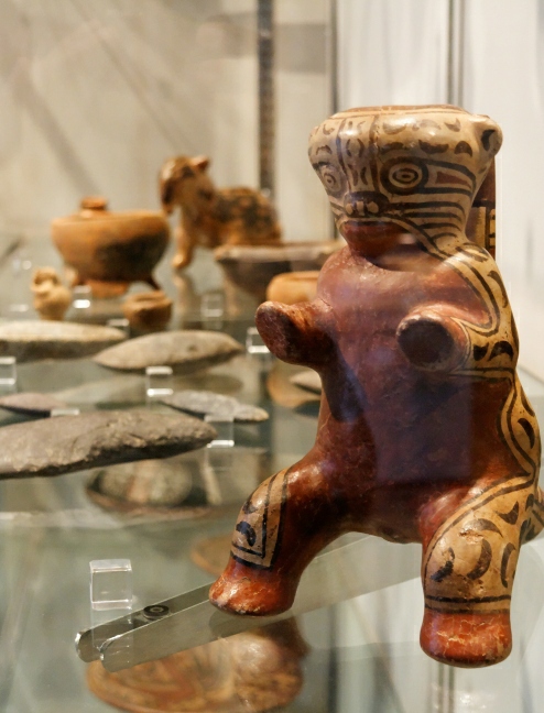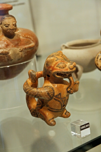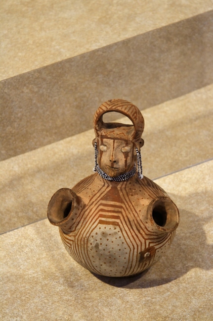 Aus Lateinamerika gibt es demgegenüber weniger "neuzeitliches", sondern eine nahezu unüberschaubare Sammlung phänomenaler Stücke aus drei Jahrtausenden. Zumindest was das künstlerische Niveau angeht, waren die Südamerikanischen Kulturen den Nordamerikanern offensichtlich um Jahrhunderte voraus. Wir können uns gar nicht losreißen und schauen uns - bis auf einen kurzen Blick auf ein paar neuzeitliche Designstücke aus den USA im Übergang - die Indianerkunst an, bis wir sanft hinausgeschmissen werden.