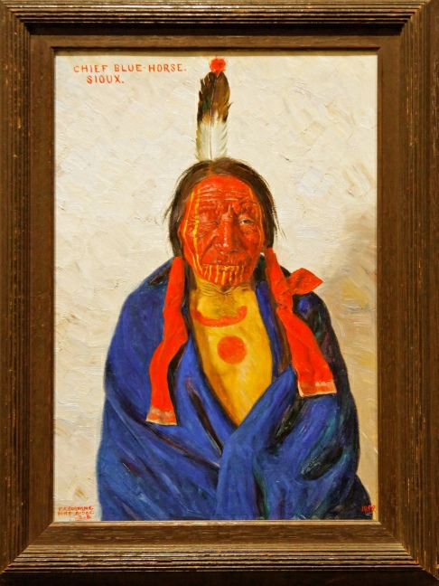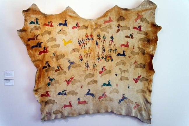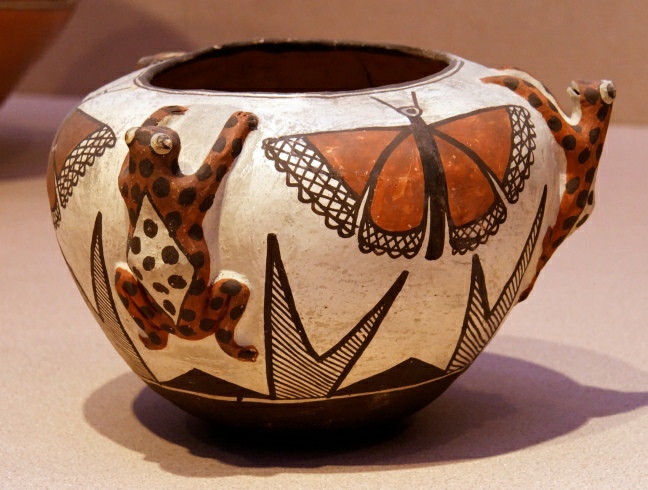 Der Neubau des Denver Art Museum von Libeskind ist ein bemerkenswertes Exemplar moderner Baukunst. An der Kasse erfahren wir, daß die Freitagsöffnung bis 10:00 Uhr nur für den Neubau gilt, das North Building dagegen schon um 5:00 Uhr zumacht. Gerade dort sind aber die Sammlungen von Native Art aus beiden Amerikas untergebracht, so daß das unser erstes Ziel ist. Von Nordamerika gibt es viele Stücke aus dem 19. Jh und zeitgenössische Exponate. Um die Fülle überschaubar zu halten, gibt es jetzt vorwiegend Thumbnails (Draufklicken!):