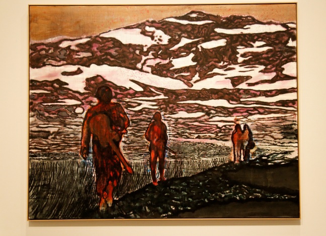 Im Libeskind-Bau sehen wir "Western Art", eine Sonderausstellung von Daniel Richter (nicht Gerhard Richter!) – überwiegend schwierige Bilder – sowie eine Mischung von zeitgenössischer Kunst und afrikanischen sowie ozeanischen Exponaten. Überall sind auch Sitzecken eingerichtet, wo man sich mit Büchern vertiefend mit den Ausstellungsstücken und/oder Künstlern beschäftigen kann. In diesem Museum könnte man Wochen verbringen!