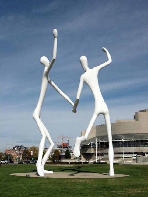 Auf dem Rückweg der Champa entlang kommt man hinter dem Center of Performing Arts vorbei, wo auf einer großen Grünfläche überlebensgroße Skulpturen einen eleganten Tanz hinlegen.
