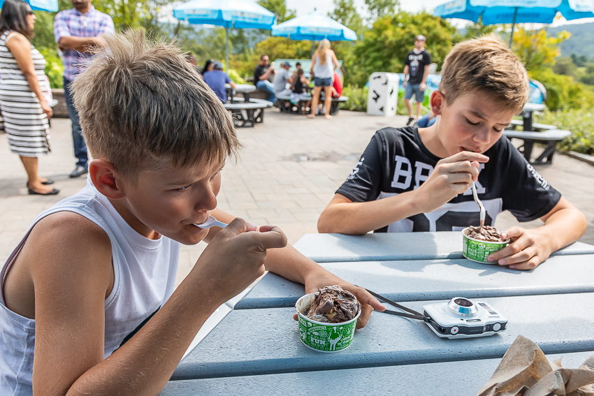 Die Nacht in Birgit’s neuem Lieblingshotel war wieder mal viel zu kurz und ebenso schnell vorbei. Das Frühstück war lecker und es gab genügend Platz - zumindest um die Uhrzeit. Da wir ja noch ca. 2,5 Stunden Fahrt bis „Niagara Falls“ vor uns hatten, waren wir heute etwas früher auf den Beinen und bereits um kurz nach 08:00 beim Frühstücken. Danach wurde wieder zügig ausgecheckt und das Auto an der nahegelegenen Tankstelle bis zum Rand gefüllt.