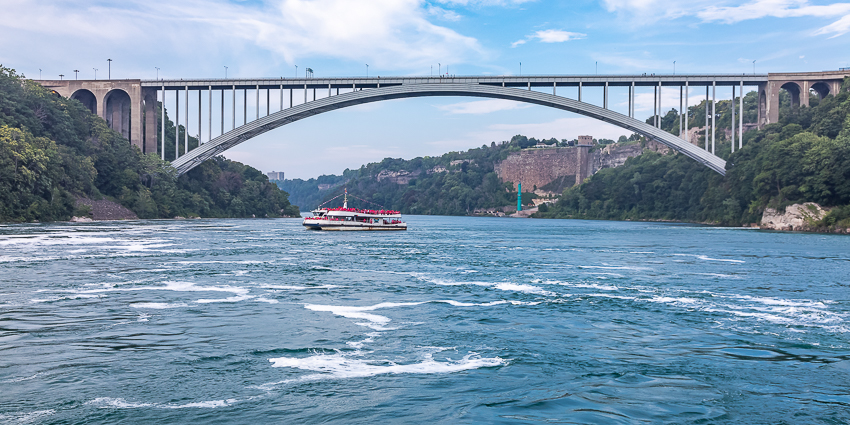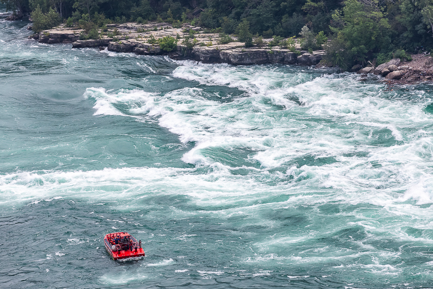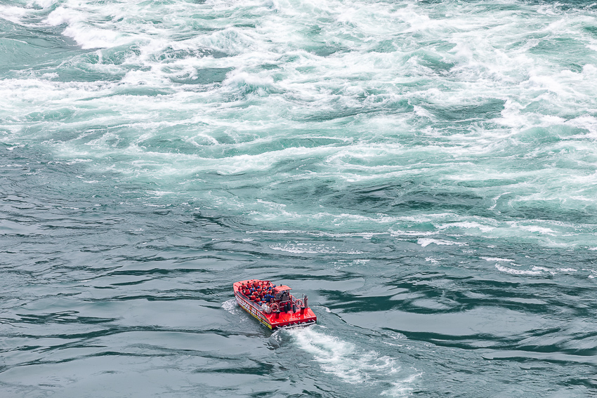 Bevor es dann endlich losging, durften wir noch nette Schwimmwesten anziehen - in den Teilen sah ich irgendwie aus wie eine Presswurst. Im Boot gab es dann noch eine kleine Einweisung, dann ging es pünktlich um 13:00 auch schon los. Der anschließende heiße Ritt durch die Stromschnellen des Niagara River’s endete im berühmten „Whirlpool“
