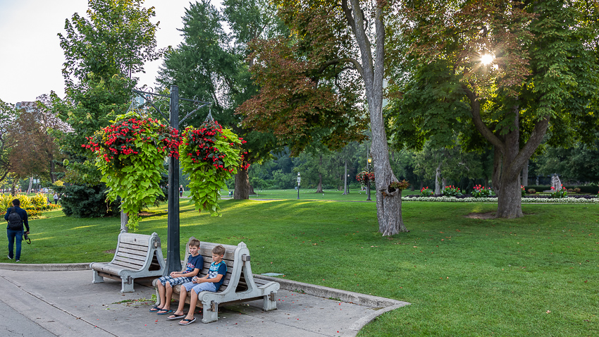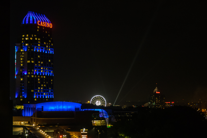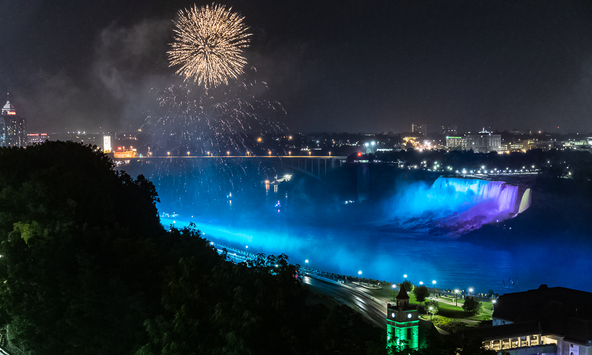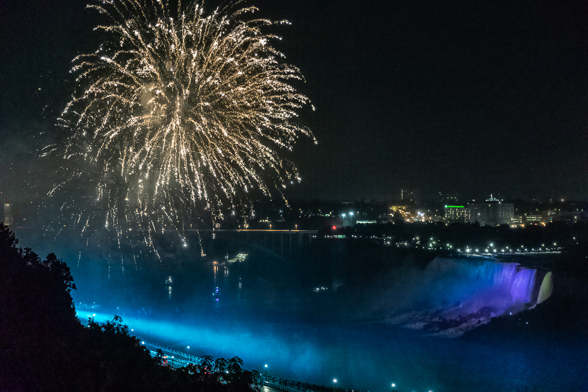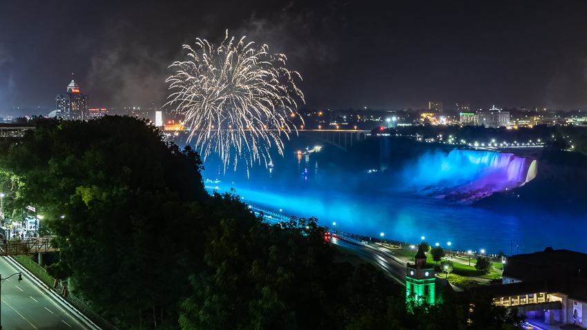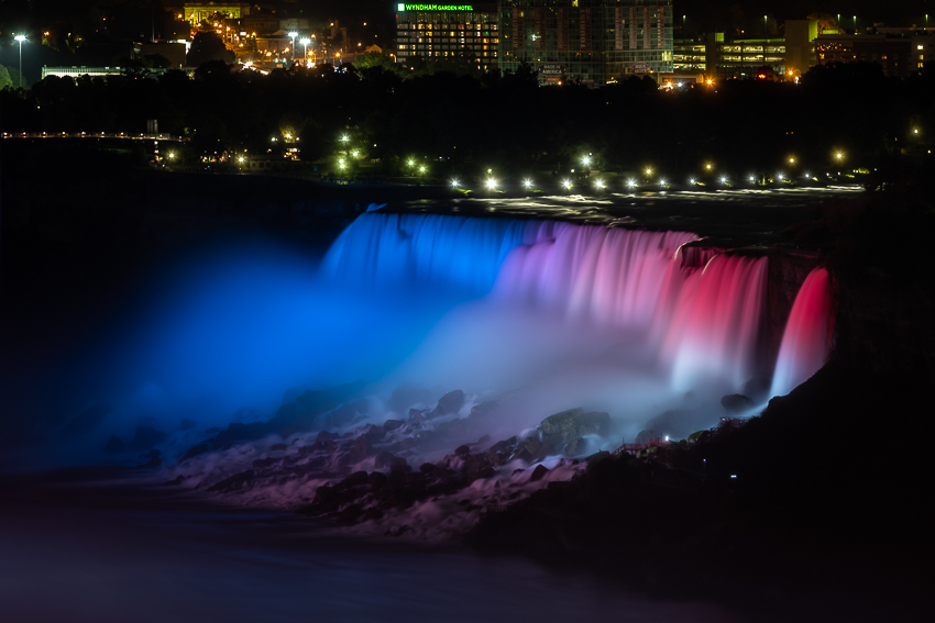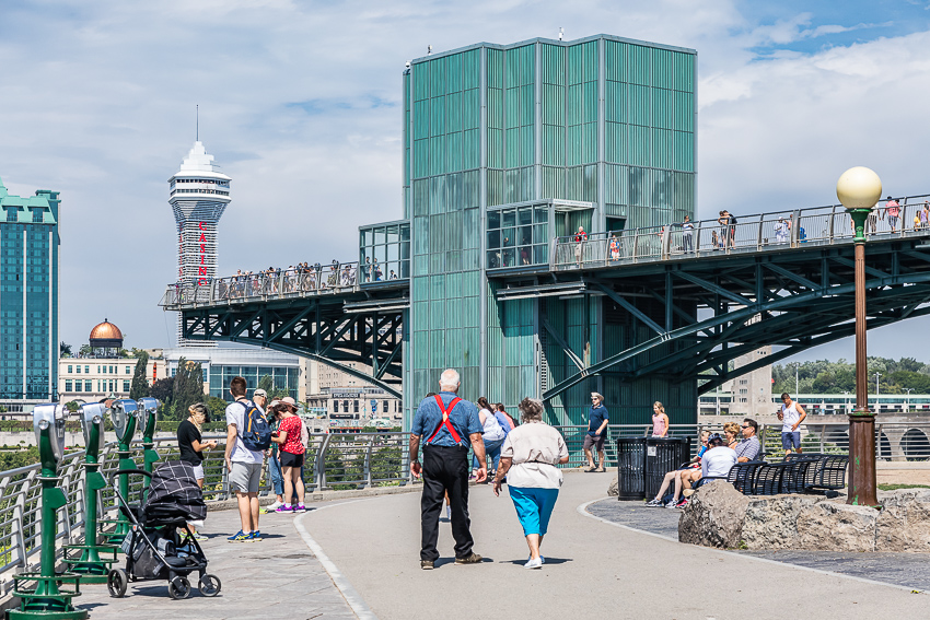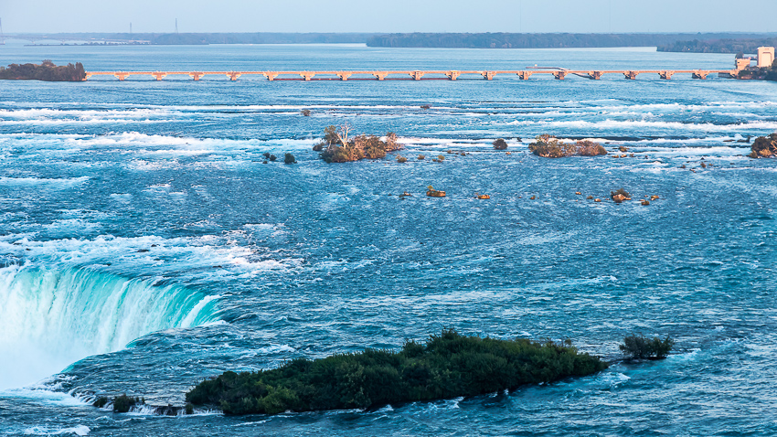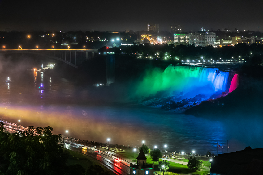 Von der ersten Bootstour ging es gleich weiter und wir fuhren nach „Niagara Falls“. Dort checkten wir in unserer Unterkunft für die nächste Nacht ein: dem „Marriott Niagara Falls Hotel Fallsview“. Während Birgit und die beiden Jungs eincheckten, fuhr ich das Auto in das ca. 5 Gehminuten entfernte Parkhaus. Valet- Parking ist uns irgendwie immer zu teuer. Wir hatten ein Zimmer im 9. Stock mit Blick auf die beiden Wasserfälle. Noch etwas höher wäre zwar schöner gewesen, es war aber anscheinend alles ausgebucht. Nachdem wir kurz die Fälle von oben bestaunten, zogen wir los - es stand uns ja noch die zweite Bootstour bevor.