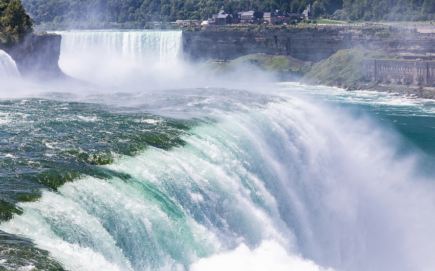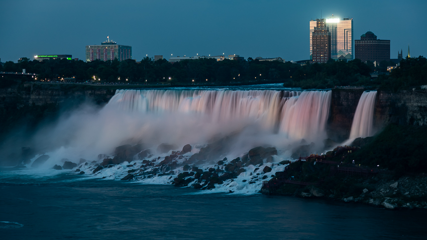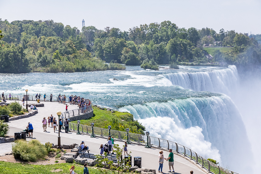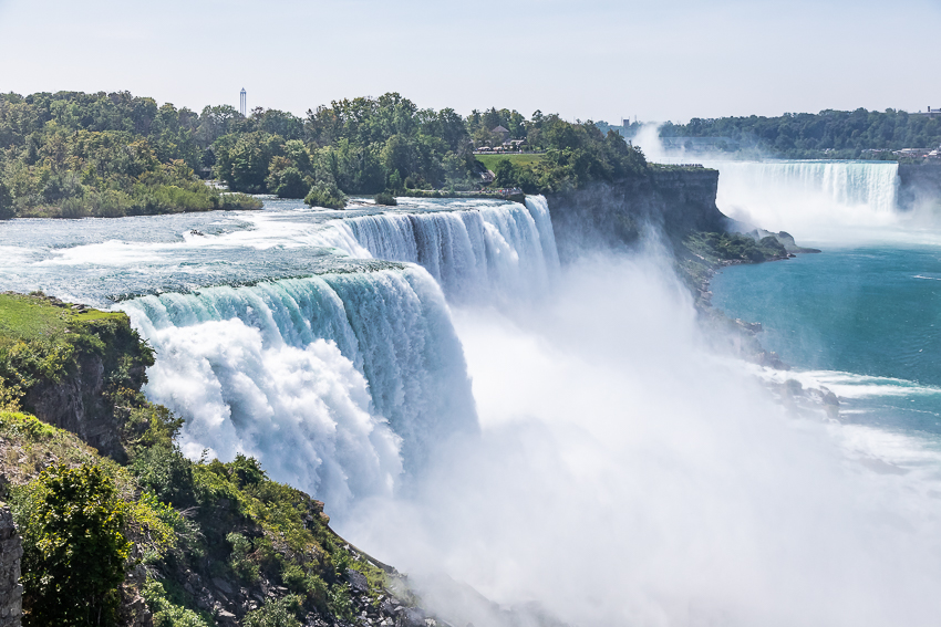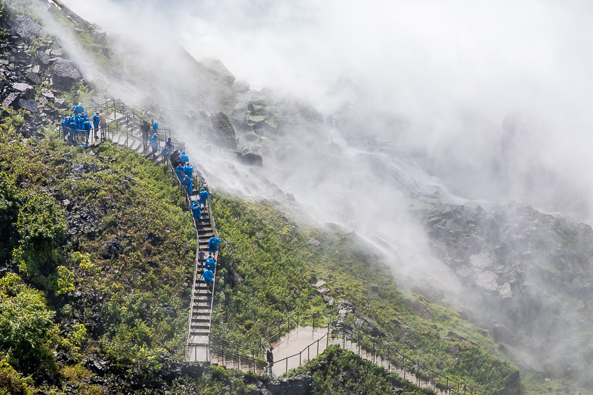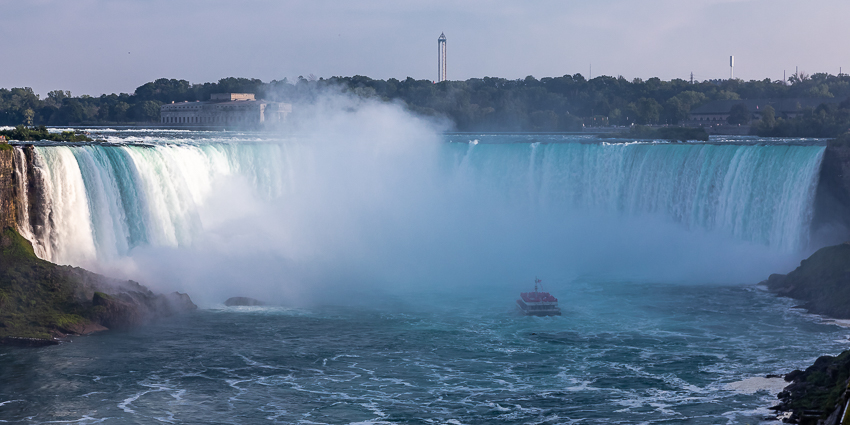 Das Highlight war dann die Fahrt in die berühmten „Horseshoe“- Falls. Hier hatte man das Gefühl, sich in den Regenausläufern eines Hurricanes zu befinden. Nach einer kurzen Verweilzeit von 1-2 Minuten ging es dann auch schon wieder zurück. Der Kahn wurde im Eilverfahren entladen und es warteten bereits die nächsten Menschenmassen auf ihre Fahrt in die Fälle. Als wir wieder auf Straßenhöhe angekommen waren, liefen wir wieder zurück Richtung Hotel.