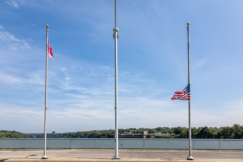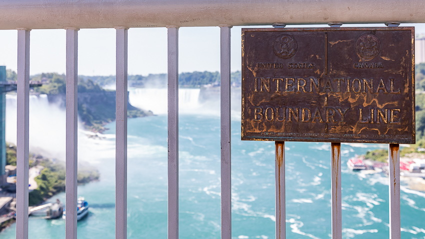 Der Grenzübertritt nach Canada ging zügig von statten, außer einem Auto war niemand vor uns. Die Beamtin fragte noch kurz, ob wir Alkohol, Spirituosen oder irgendwelche Waffen dabei hätten, dann waren wir auch schon „drüben“. Als erster Tagespunkt stand um 14:00 der Ritt mit dem „Open Jet Boat Ride on the Niagara River“ an. Da wir weder Stau noch Probleme bei der Einreise nach Canada hatten, waren wir etwas zu früh dran. Die Wegbeschreibung bis zum Anlegesteg war etwas dürftig und vor allem besch… ausgeschrieben. Erst einige Meter vor dem Ziel weist ein winziges Schild auf das Spektakel hin.