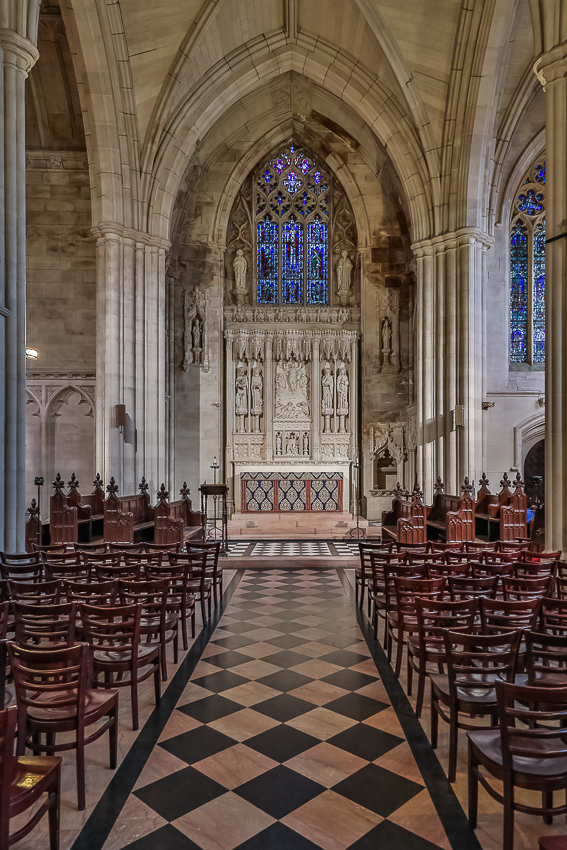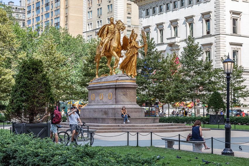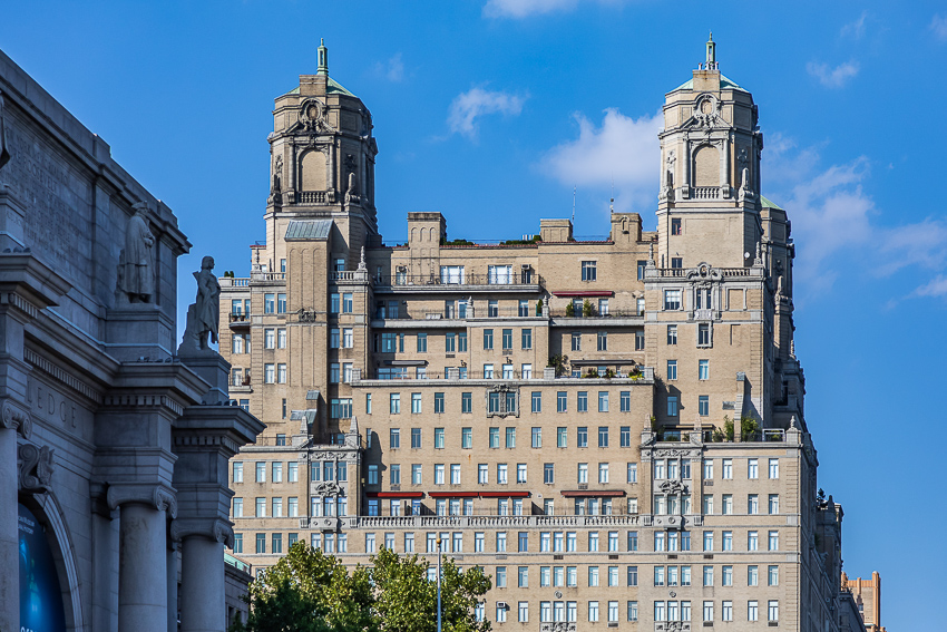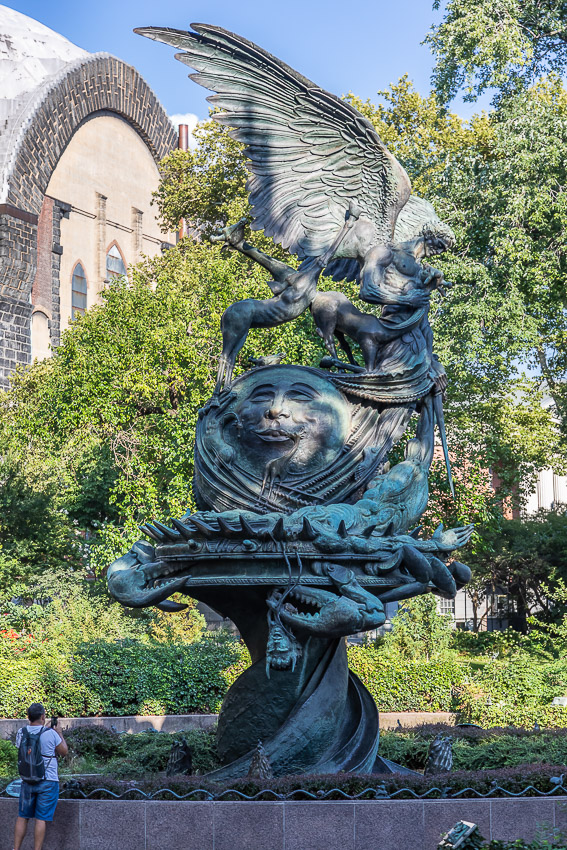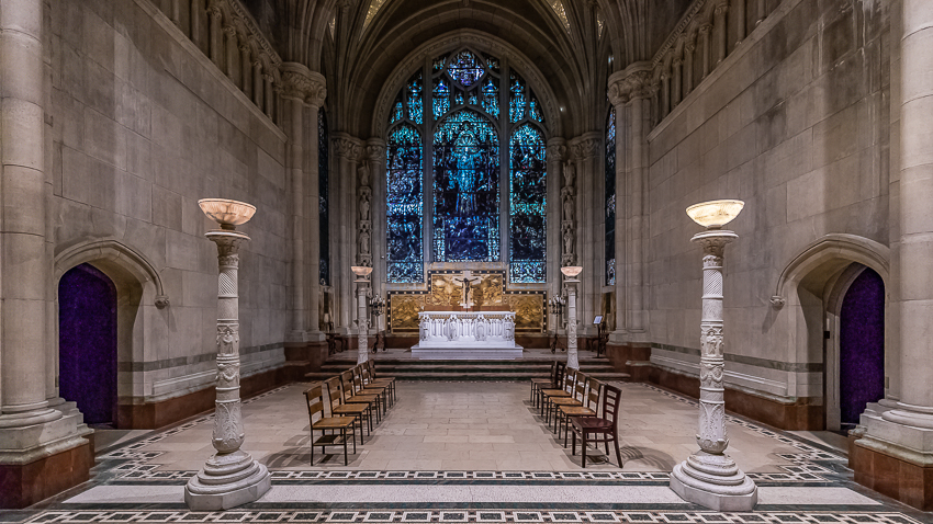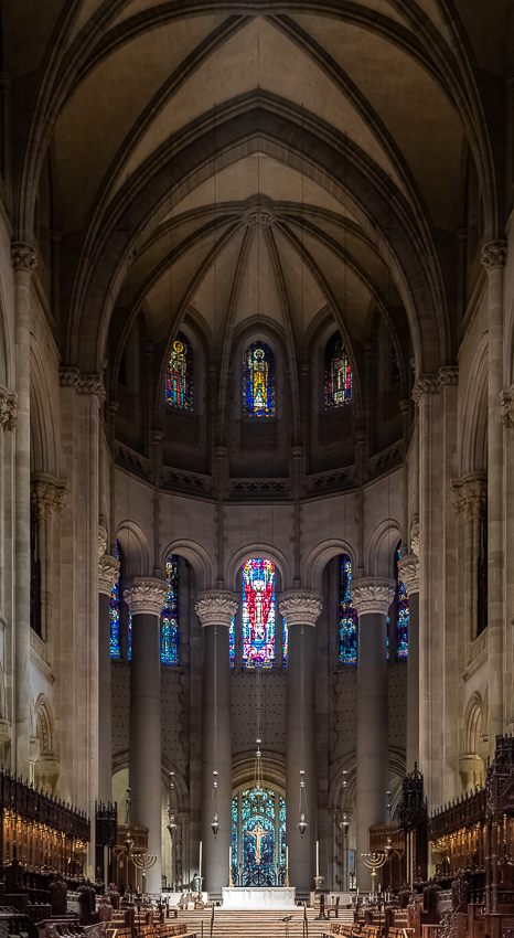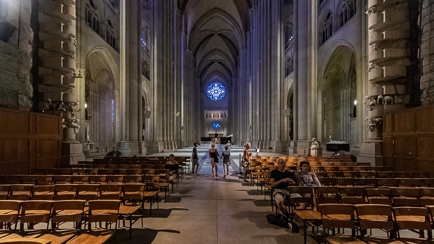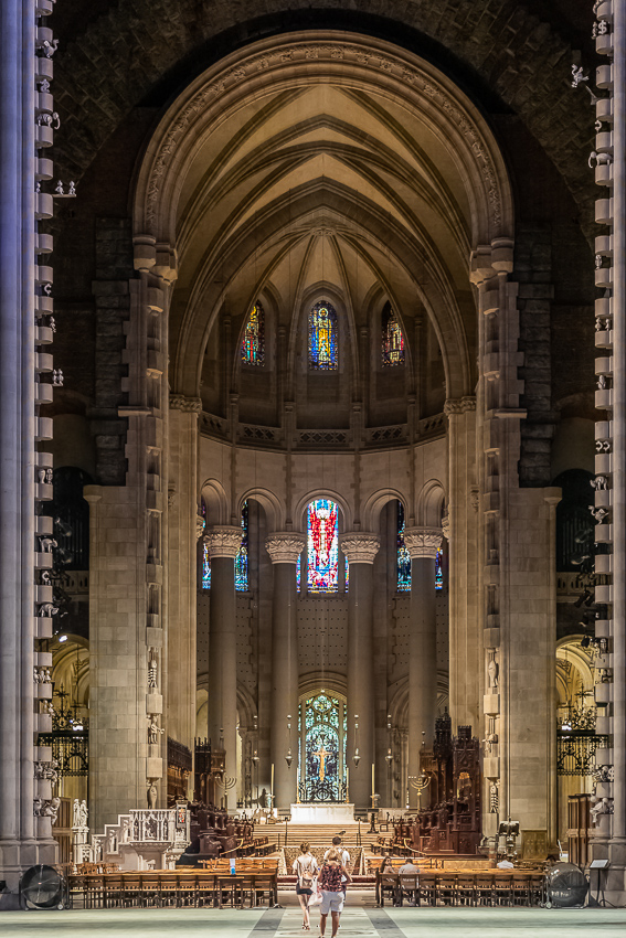Dann liefen wir zum „Visitor Center“ an der Ecke 8th Ave / 47st Street. Hier holten wir uns die Pässe für die „Hop On / Hop off“ Busse, die einem das Überwinden der zum Teil riesigen Entfernungen doch etwas erleichtern. Die Pässe waren Teil des bereits in Deutschland gebuchten „The New York Sightseeing Pass“. An der erstbesten Haltestation stiegen wir zu, und fuhren den „Central Park“ entlang Richtung Norden. An der „Cathedral Church of Saint John the Divine“ stiegen wir dann kurzentschlossen aus. Birgit und ich waren hier schon einmal vor ca. 15 Jahren, da wollten wir einfach noch einmal kurz Halt machen. Die Kathedrale liegt im Viertel „Morningside Heights“ in der Upper West Side, Amsterdam Avenue, Ecke 112th Street. Der Baubeginn war 1892 und wurde bis heute aufgrund von Geldmangel nicht beendet.