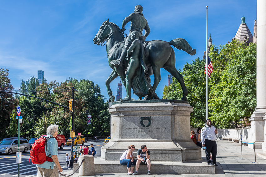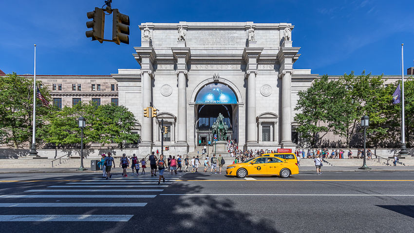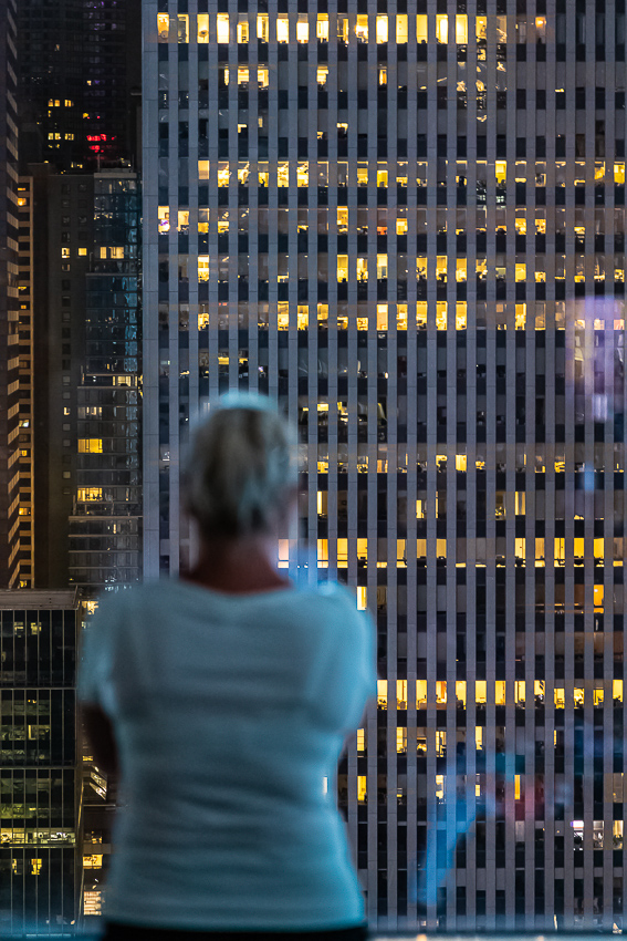 Zum Abschluß des Tages verweilten wir noch einmal einige Zeit auf der roten Tribüne am „Times Square“ und bestaunten das bunte Treiben sowie die taghell leuchtenden Reklametafeln. Gegen kurz nach 20:00 gingen wir dann von all den Eindrücken erschlagen wieder zurück ins Hotel. Dort wollten wir noch einen kurzen Abstecher in die „SkyLounge“ im 54. Stockwerk unseres Hotels machen - leider klappte das nicht, da der Zutritt nur erlaubt ist, wenn man auch was trinkt oder ißt. Also ging es auf’s Zimmer und wir bestaunten wieder die Aussicht. Tom weihte mich dann auch noch in seine Pläne ein, sich im Apple Store in der 5th Avenue eine Apple Watch zulegen zu wollen. Der Plan war bereits seit Anfang der Sommerferien in ihm gereift und er hatte sich im Vorfeld sogar zwecks Zoll im Internet erkundigt. Tom ist ansonsten äußerst sparsam und nach einigen Diskussion zwecks Vor,- und Nachteilen (Garantie, Zoll, etc.) war das Thema gebongt. Morgen wollten wir nun mit dem Besuch des „American Museum of Natural History“ unsere New York City Reise beginnen. Da es noch einmal sehr heiß werden sollte (33°), war das vielleicht keine schlechte Idee.
