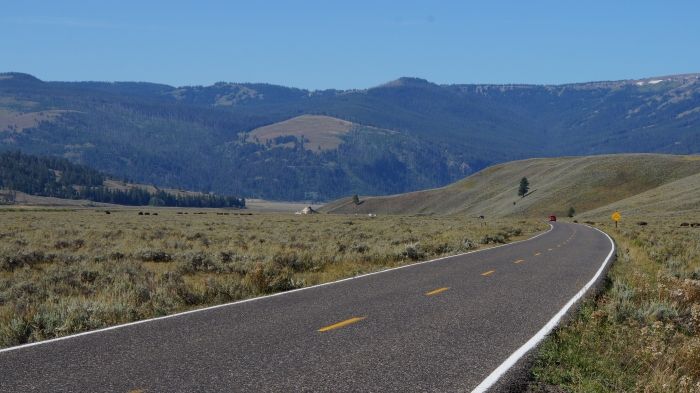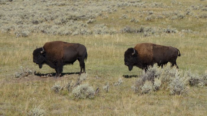 Und hier bekamen wir auch schon die ersten grossen Bison-Herden zu sehen. Ich kann gar nicht beschreiben wie einem hier das Herz aufgeht beim Anblick dieser einzigartigen Landschaft. Im weiteren Verlauf der Fahrt bekamen wir ausserdem noch einige Pronghorns, Deers und ganze Schwärme fliegender Wildenten zu sehen. Man fühlt sich wie in einem riesigen Natur-Zoo mit unzähligen nicht-menschenscheuen Wildtieren.