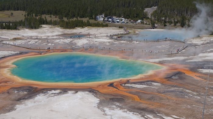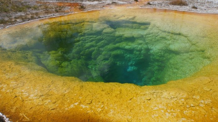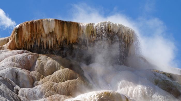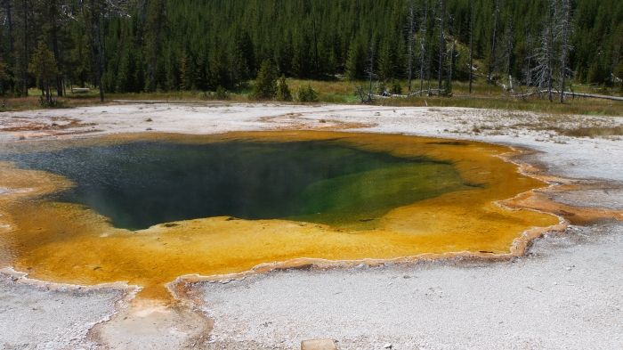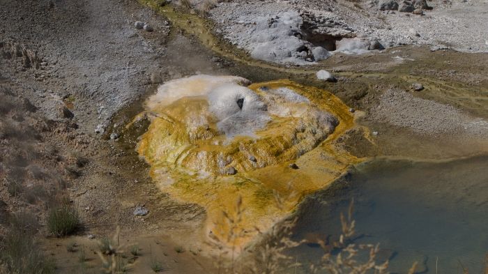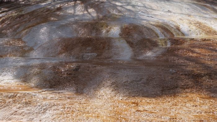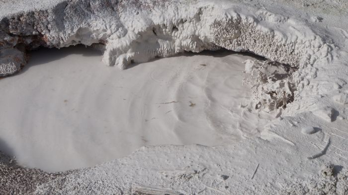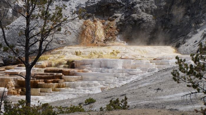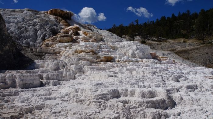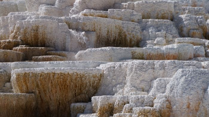 Mammoth Hot Springs. Ich habe im Forum viel darüber gelesen, dass die Terrassen nicht mehr so schön wären und so. Gut, ich habe keinen Vergleich zu den letzten Jahrzehnten, aber wir fanden die Quellen noch ziemlich aktiv und die Kalkterassen farbenfroh bzw. teilweise strahlend weiss. Ich bin auch den gesamten Loop abgelaufen. Hier ein paar Fotos: