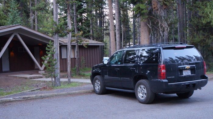 ) aber ein Sauerstoffzelt brauchte ich nicht. Irgendwas um die 200 Stufen sollen es sein, gezählt habe ich sie nicht. Das war definitiv ein ereignisreicher erster Tag im Yellowstone, so kann es weiter gehen. Nun geht es aber zum Yellowstone Lake wo unsere Cabin auf uns wartet. Da wir hörten und lasen, dass die Versorgungslage im Park nicht so toll sein soll hatten wir uns zur Sicherheit ein Mikrowellengericht besorgt, zumindest mal für den ersten Abend. Die Ernücherung war gross als wir die Cabin betraten: natürlich keine Mikrowelle, noch nicht einmal ein Kühlschrank war dort um unsere Getränke zu kühlen. Fanden wir mager für einen Preis über $200 die Nacht! Eine Kaffee-Maschine war das einzige was wir vorfanden. Die Cabin an sich war eigentlich schön eingerichtet.