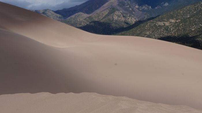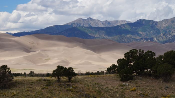 Unser nächstes Ziel war der Great Sand Dunes NP. Die riesigen Sanddünen sieht man schon eine Stunde bevor man dort ist –so gross sind die Dünen und so flach ist das Land davor.