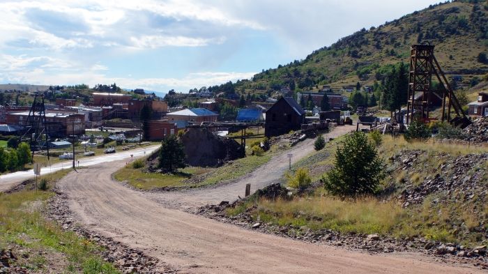Am Ende der Strecke kommt man kurz vor der Goldgräberstadt Victor raus und man sieht sofort mehrere Fördertürme aus der Goldgräberzeit. Das hat uns natürlich sofort magisch angezogen und wir fanden einen Historic Trail auf dem man die alten Claims ablaufen konnte. Was ich noch gar nicht wusste: In den 90er Jahren war der Goldpreis wieder stark gestiegen und seitdem wurde hier wieder verstärkt Gold abgebaut, das hält bis heute an.