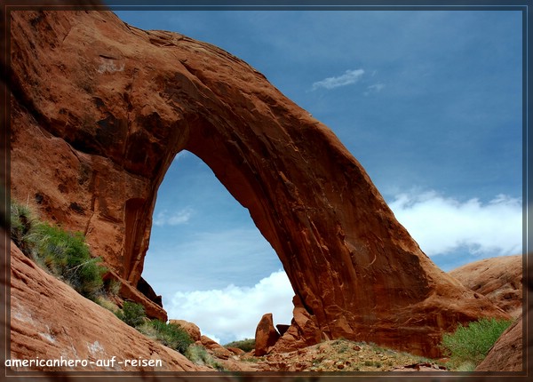 Wahnsinn, wie imposant der doch war.  Ein wirklich beeindruckender Arch, der uns auf einmal total winzig erscheinen liess. Nach etlichen Fotos machten wir uns dann so langsam auf dem Rueckweg. Der zog sich natuerlich auch wieder etwas in die Laenge, da wir zwischendrin doch immer wieder stoppten. Das ging gar nicht anders.:grins: Der letzte Anstieg den Sandhuegel hinauf war dann doch recht knackig und wir waren froh, dann wieder am Auto zu sein.