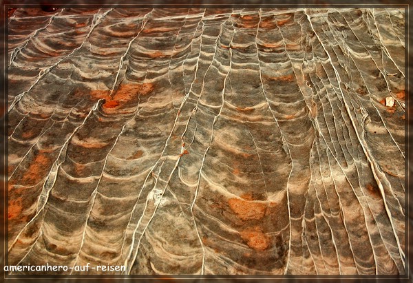 Schon bald entdeckten wir einen Bereich mit wunderschoen gemusterten Sandstein und die Strukturen bildeten nahezu ein Kunswerk. Das sah wirklich klasse aus. Es war schon erstaunlich, welche Meisterwerke die Natur doch zustande bringen konnte.