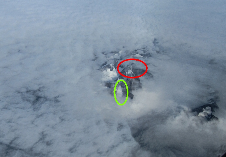 Indizien: Flugroute, Zeitabstand, geahnter Fjord, grün markiertes Schneefeld und die Schneefelder weiter "hinten".