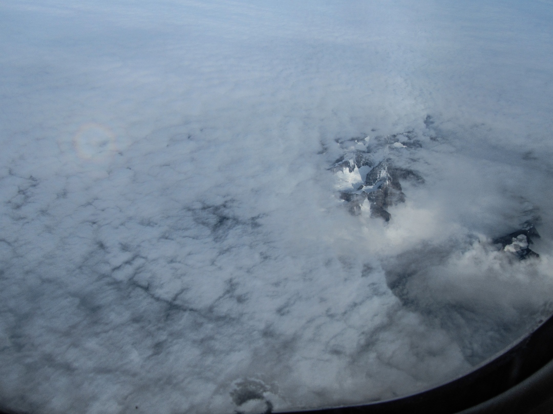 Auf dem ersten Bild ahnt man auch ein wenig Wasser durchschimmern, vermutlich handelt es sich um diesen Gipfel (rot markiert) bei 66.423195, -35.631591 (Satellitenbild):
