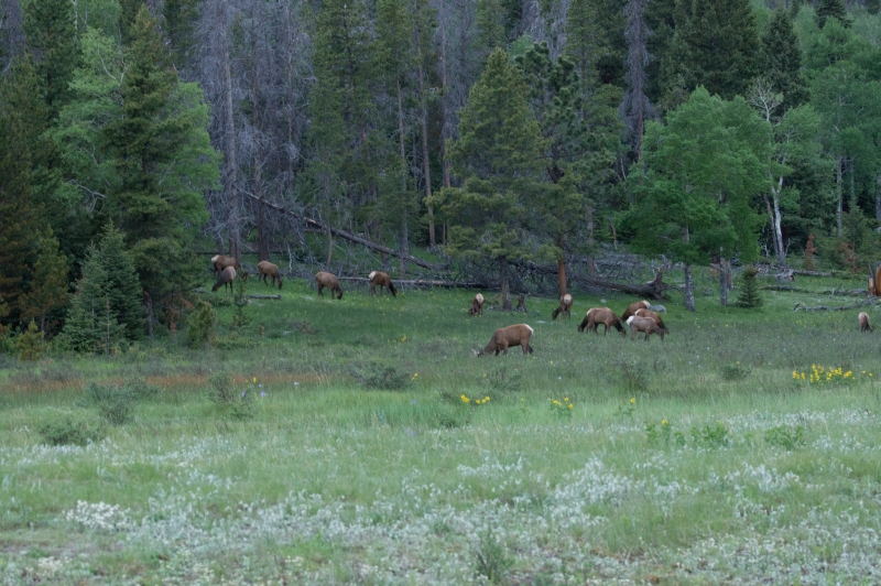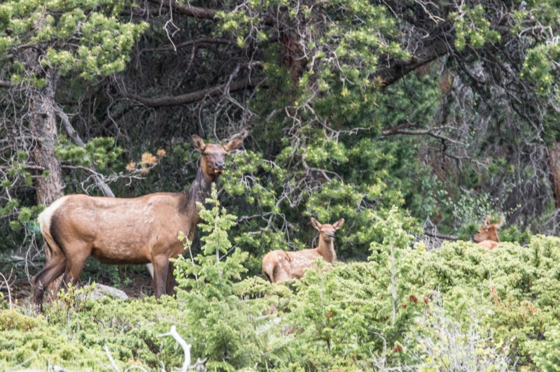 Nachdem wir unseren Passport auch hier gestempelt hatten, ging es weiter. Auf dem Weg zum Bear Lake Parkplatz, kamen wir an einer Gruppe Elks vorbei: