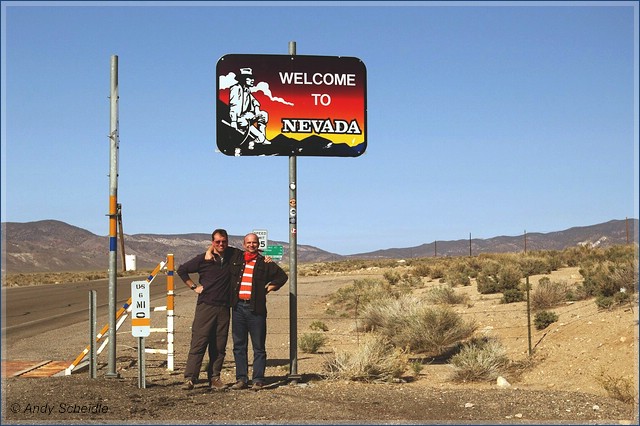 klickDie Landschaft ist sehr abwechslungsreich und interessant; gab es am Monolake noch niederes Gestrüpp, so befinden wir uns kurze Zeit später in bewaldeter Umgebung, die kurze Zeit später in eine grüne Hochebene wechselt und dann allmählich die Landschaftszüge der Nevada Wüste annimmt. Hier ist es noch sehr hügelig, es geht stetig bergab und im Hintergrund haben wir die schneebedeckte Bergkette der Sierra Nevada – einfach nur schön. Die 180 Meilen bis nach Tonopah ziehen sich, gegen 17.30 h treffen wir in dieser „Stadt“ endlich ein – allzu ansprechend ist sie nicht, doch wir wollen hier auch nur eine Nacht bleiben. Einchecken im Ramada und kurz frisch machen, dann geht es noch in den Supermarkt nebenan, der ziemlich teuer aber auch der einzige hier im Ort ist. Wir dürfen auf die Manager Card einkaufen und bekommen die Club Preise, die immer noch ziemlich teuer sind, doch die nächsten Tage haben wir keine anderen Einkaufsmöglichkeiten. Zum Essen geht es in ein Mexikanisches Restaurant und gesättigt und zufrieden und auch k.o. geht es zurück ins Motel.