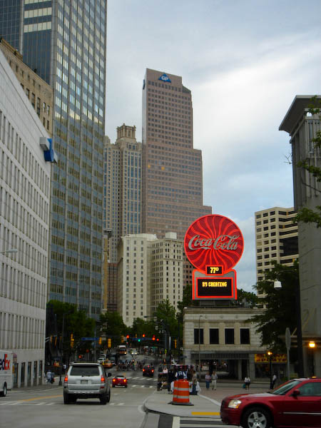 So langsam war es jetzt Zeit, sich auf den Weg nach Atlanta zu machen. Also ab auf den Interstate und ohne weitere Pause durch. In Atrlanta hatte ich uns Zimmer im Hotel The Ellis, direkt an der Peachtree Street gebucht. Ein tolles Hotel mit für Metropolenverhältnisse durchaus moderaten Preisen (124$ für einen One-Quenn-Room und 154$ für ein Double-Double). Nach zweimaligem um-den-Block-fahren und einmaligem regelwiedrigem wenden (geschickterweise direkt unter einer Überwachungskamera) habe ich die Parkplatzsuche aufgegeben und einfach direkt vor dem Valetstand die Strße blockiert. Scheinbar war das auch die einzige und durchaus übliche Methode.