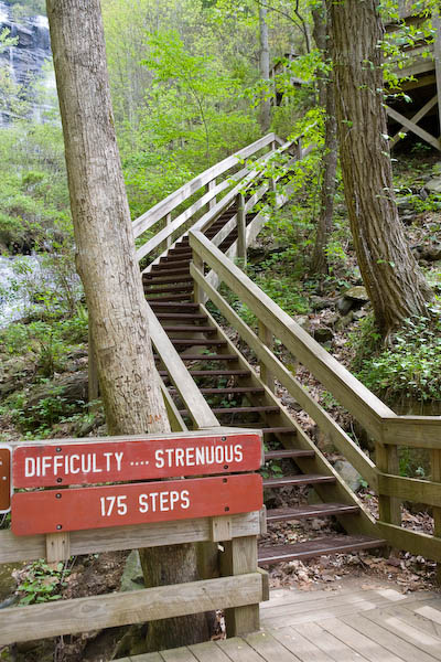 Nach ca. 75 Meilen, überwiegend auf schmalen Landstraßen durch eine grüne Mittelgebirgslandschaft hatten wir unser erstes Ziel erreicht – den Amicalola State Park mit den gleichnamigen Falls. Von hier startet ein Zugangsweg zum Startpunkt des Appalachian Trails in etwa 7 Meilen Entfernung. Den haben wir uns aber geschenkt ;).