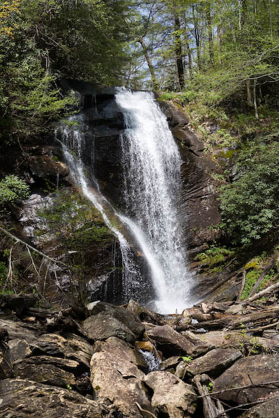 Im Visitor Center habe ich mir noch eines der obligatorischen Souvenir T-Shirts gekauft. Dann war es Zeit für die letzte Etappe Richtung Cherokee. Durch die erstan Ausläufer der Appalachen ging es über Berg und Tal und ein paar Serpentinen über eine landschaftlich recht hübsche Strecke. Eigentlich hatten wir vorgehabt, unterwegs noch den Dry Falls einen Besuch abzustatten aber die Zufahrt dorthin ist leider seit November 2007 wegen Bauarbeiten gesperrt. So blieben uns nur die Bridal Veil Falls direkt am Highway 64. Nichts dolles aber immerhin kann man ganz nette Fotos durch den Wasservorhang machen.