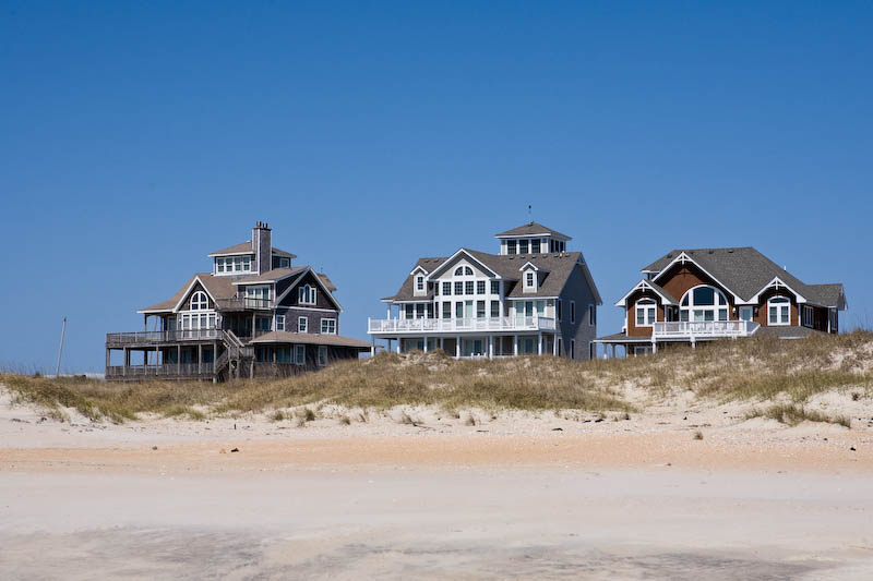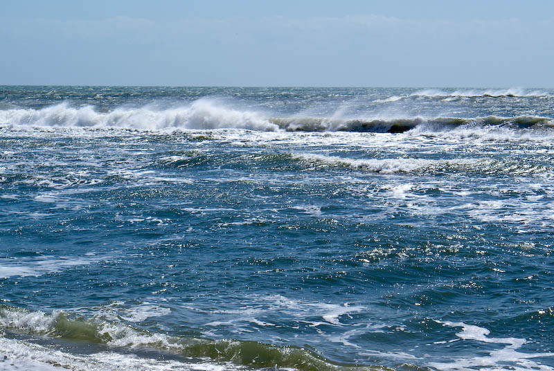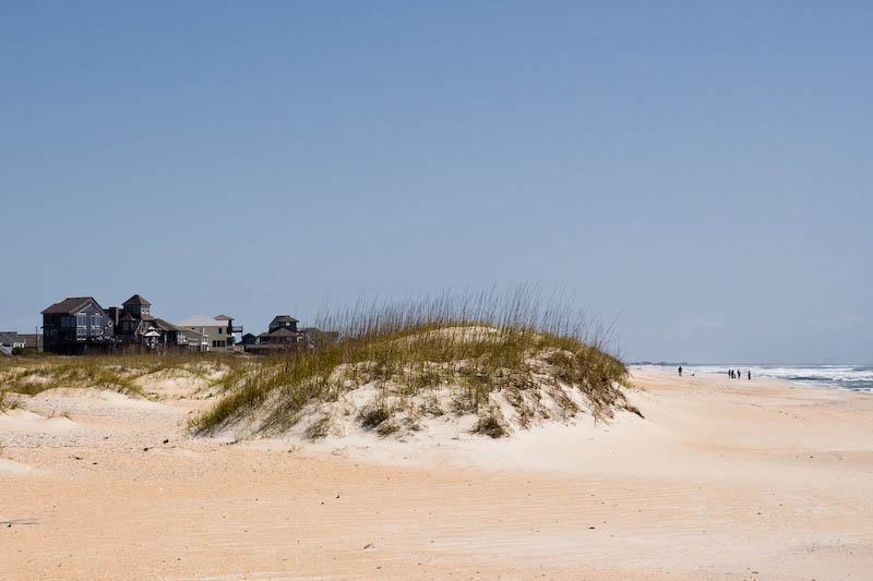Kitty Hawk und Naggs Head sind schon sehr touristisch, voll und dicht bebaut. Südlich davon wird es etwas einsamer und schöner.  Zum Teil sind die Inseln so schmal, dass man gleichzeitig auf den Pamlico Sound und den offenen Atlantik blicken kann.