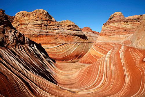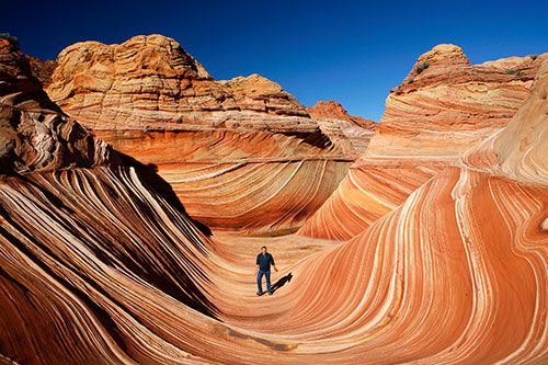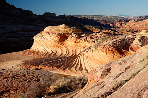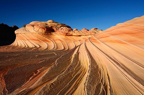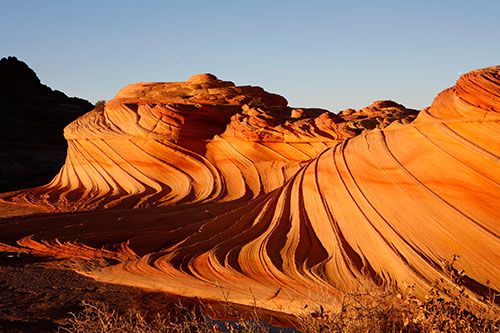 Hat mir besser gefallen als die eigentliche Wave. Das schönste war, dass von den 20 bzw. 16 Leuten (s.o.), die an diesem Tag an der Wave waren, nur wir 3 bis hierhin vorgedrungen waren. Der Rückweg im Dämmerlicht hat deutlich länger gedauert als der Hinweg aber kurz bevor es ganz finster war, sind wir wieder im Wash, der zum Parkplatz zurückführt, angekommen und hatten noch das Vergnügen einen wunderbren Sternenhimmel zu bewundern. Dank der Ortskenntnis des Amerikaners, der hier jeden Felsen beim Vornamen zu kennen schien, war es kein Problem den Weg zu finden, aber auch alleine hätte ich wohl keine Probleme gehabt.