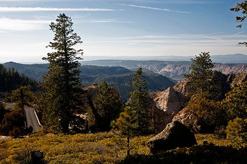 Was soll's, weiter geht’s. Zurück auf der „Hauptstraße“  ging es jetzt über diverse Serpentinen immer höher bis auf etwa 2800m die Hells Backbone Bridge erreicht war. Dabei handelt es sich um eine schmale, einspurige Brücke über eine tiefe Schlucht namens Death Hollow. Rechts und links ging es einige 100m tief runter. Nichts für Menschen mit Höhenangst!