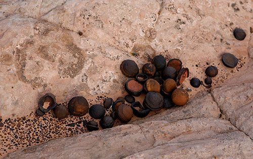 Meines Wissens müssten das Konkretationen aus Sandstein mit Eisenoxidkern sein. Bin aber kein Experte in sowas. Aber schön sehen sie aus, die Moqui Marbles. Aber es freut mich zu hören, daß man trotz der letzten Unwetter wieder zum MOqui Hill hinkommen kann :wink: